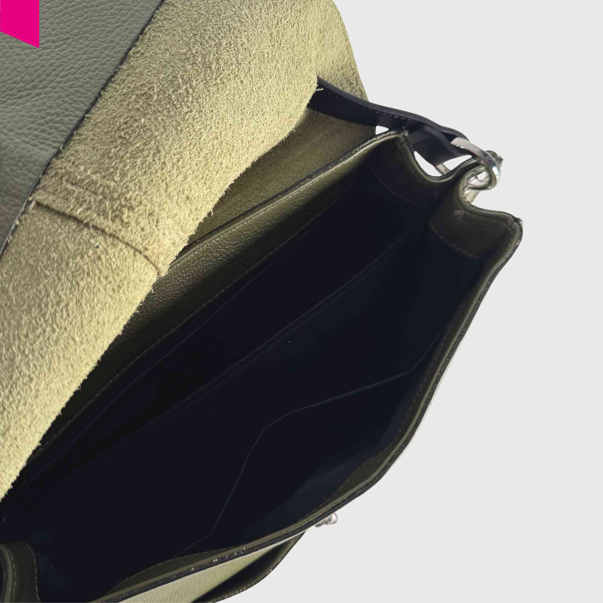 Das gefütterte Innere bietet kleine Taschen zur organisierten Aufbewahrung. Dank des abnehmbaren und verstellbaren Schulterriemens kann CAROLE auch crossbody getragen werden – ein vielseitiger Begleiter für den Alltag!