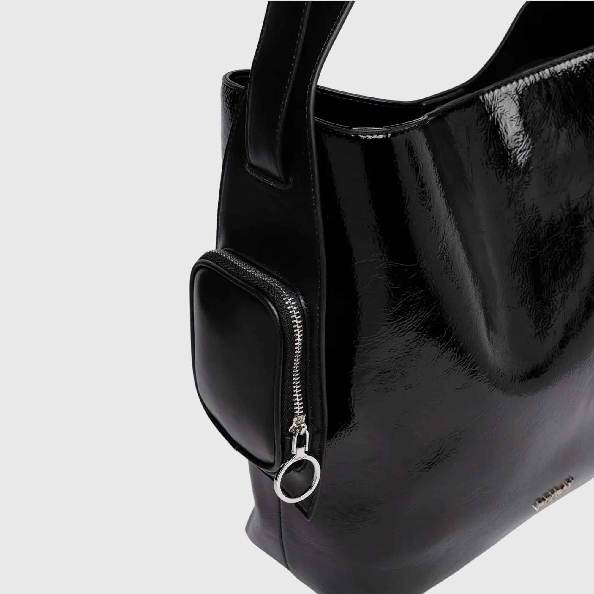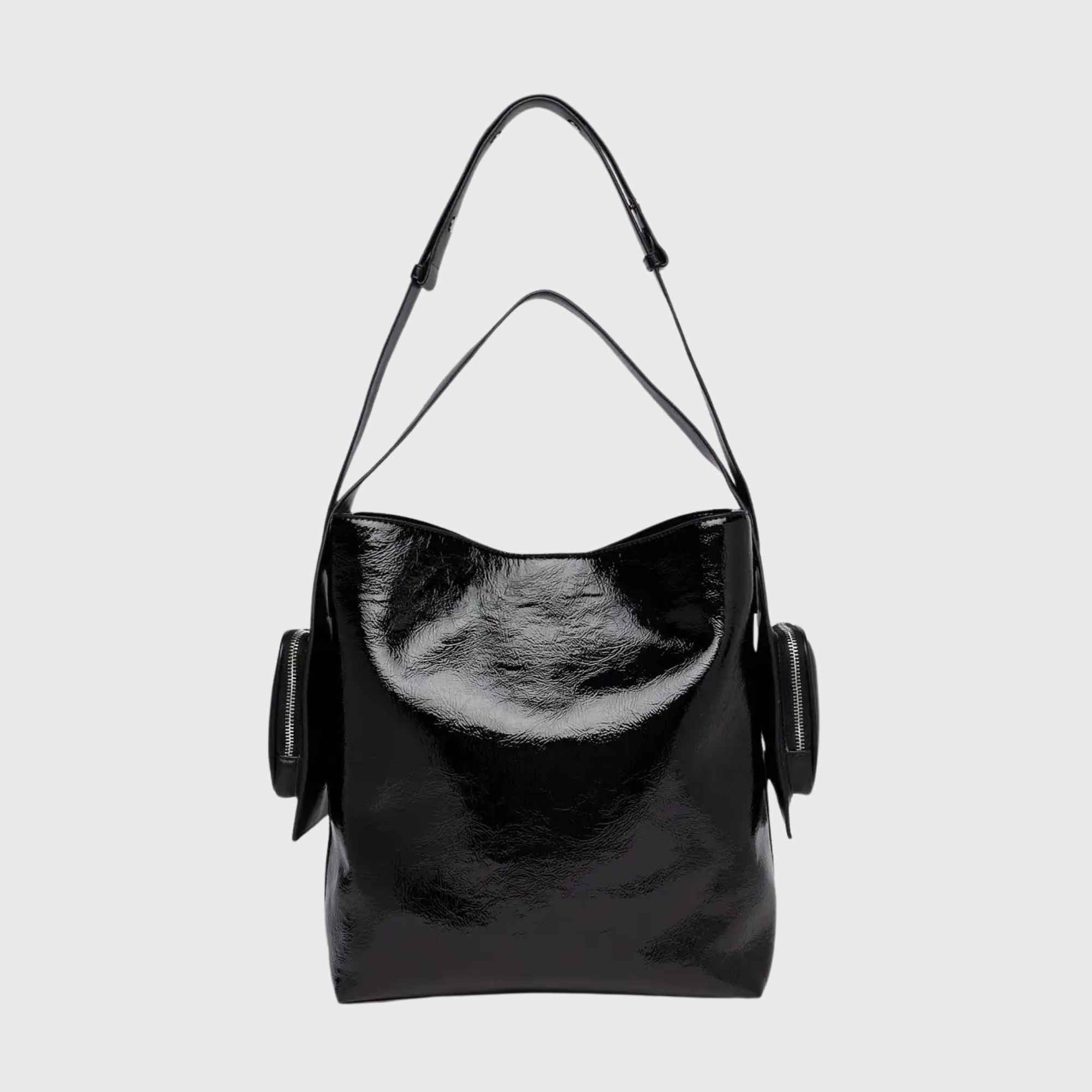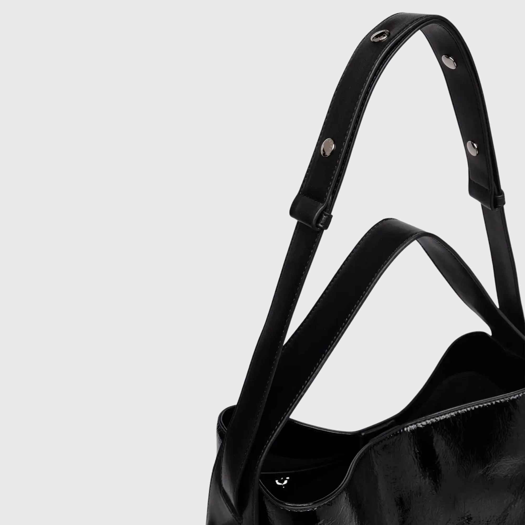 Einfarbige Tasche aus weichem, recyceltem patentiertem PU, einem nachhaltigeren Material für eine umweltfreundliche Wahl.