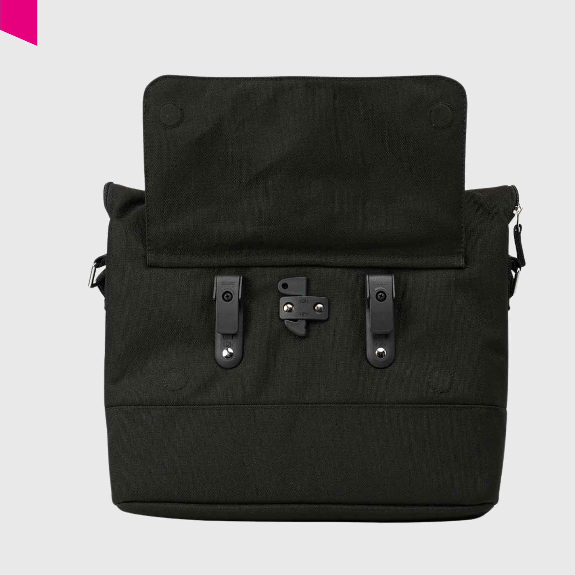 Am Fahrrad wird die Tasche sicher am Gepäckträger befestigt. Das Gewicht liegt stabil auf dem Rad – nichts schwingt, rutscht oder belastet die Schultern. Am Ziel angekommen, lässt sich die Bike Satchel in wenigen Handgriffen zur Messenger Bag umfunktionieren und passt mit ihrem reduzierten Look perfekt ins Büro oder in die Stadt.