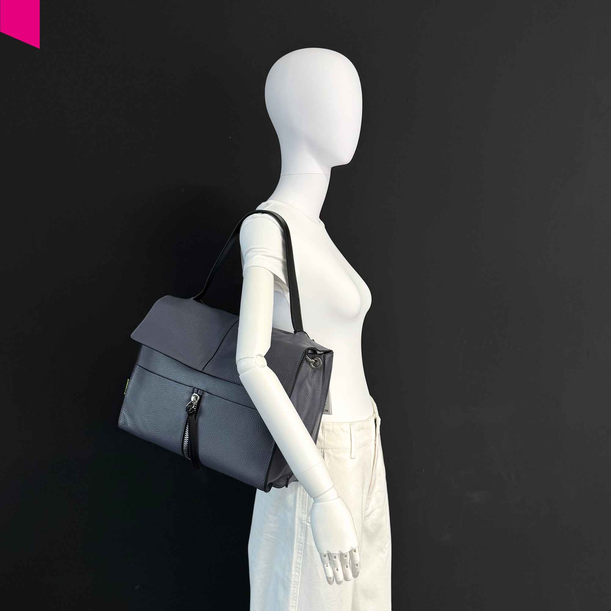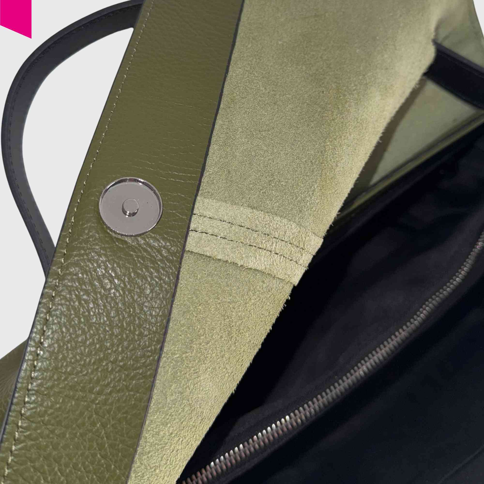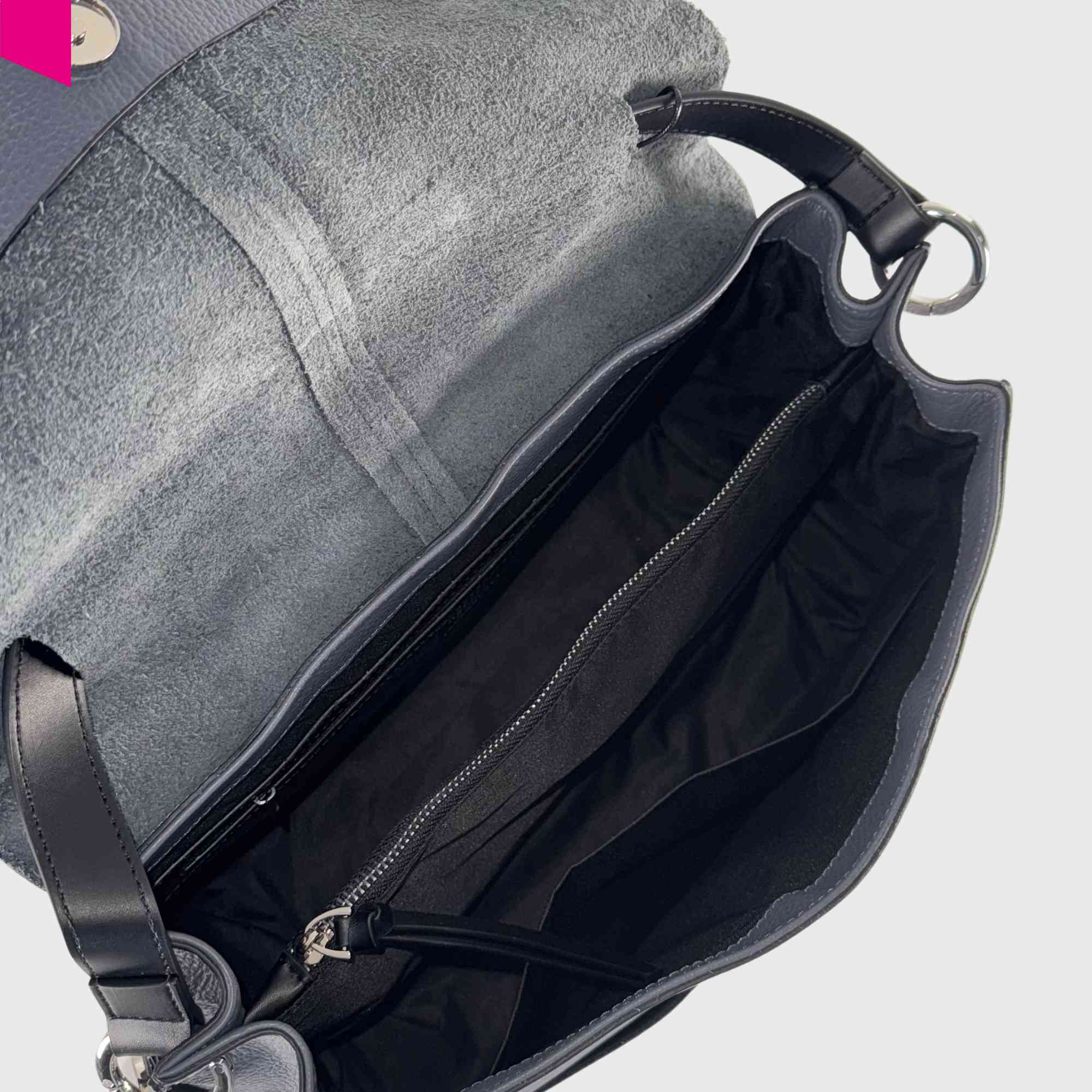 Dies ist CLIO, eine Schultertasche aus echtem, in Italien gefertigtem Leder. Sie gehört zur BASIC-Kollektion. CLIO ist das Must-Have der Rebelle-Kollektion, eine bequeme, praktische und modische Tasche. Sie zeichnet sich durch ihre doppelte Tragbarkeit aus: Man kann sie in der Hand tragen oder dank des abnehmbaren und verstellbaren Schulterriemens auch als Crossbody-Tasche verwenden. Das Innenleben ist gefüttert und in zwei sehr große Fächer unterteilt, die durch eine Reißverschlusstasche getrennt sind. Die Vorderseite der Tasche verfügt über zwei Einschubtaschen. Außen ist ein abnehmbarer Schlüsselanhänger mit dem Rebelle-Logo angebracht.