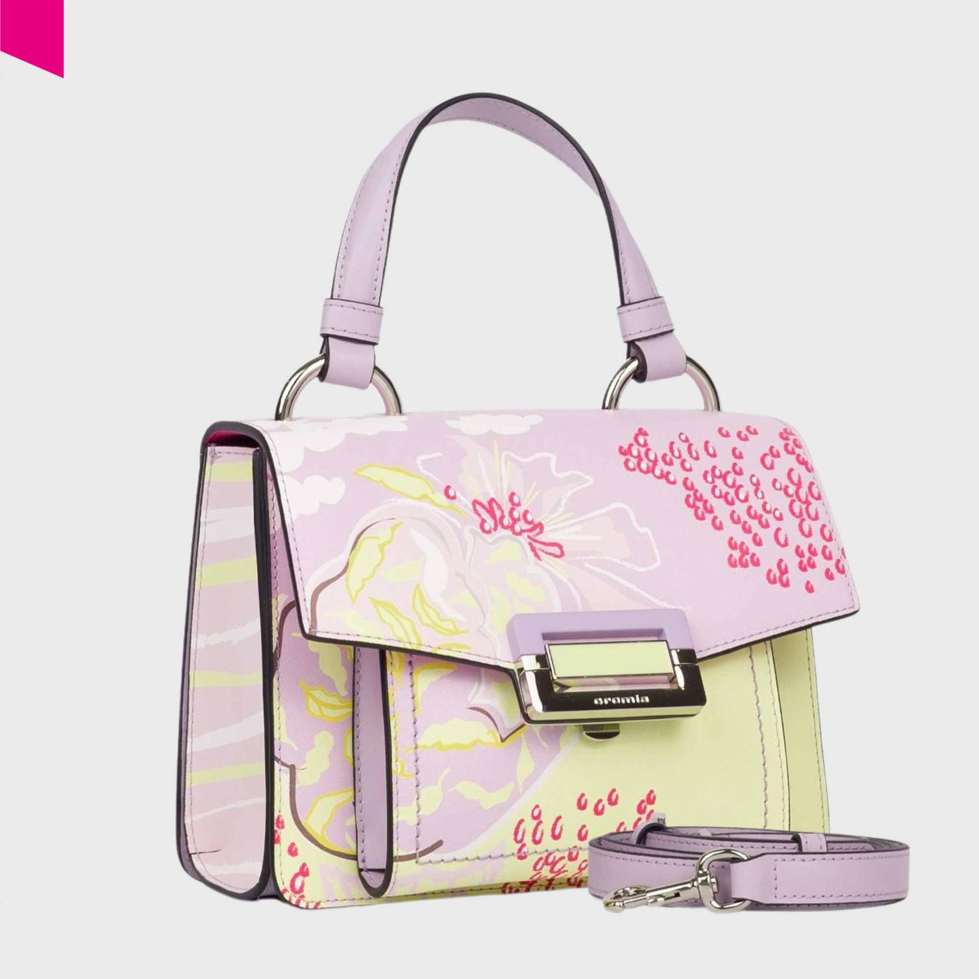 Die CROMIA Ladies Bag Miss Calypso vereint italienische Eleganz mit einem modernen, femininen Design. Diese hochwertige CROMIA Designer-Handtasche wird aus edlem bedrucktem Kalbsleder (Vitello Liscio Stampato) gefertigt und überzeugt durch ihr außergewöhnliches Farbspiel und die feinen floralen Muster.