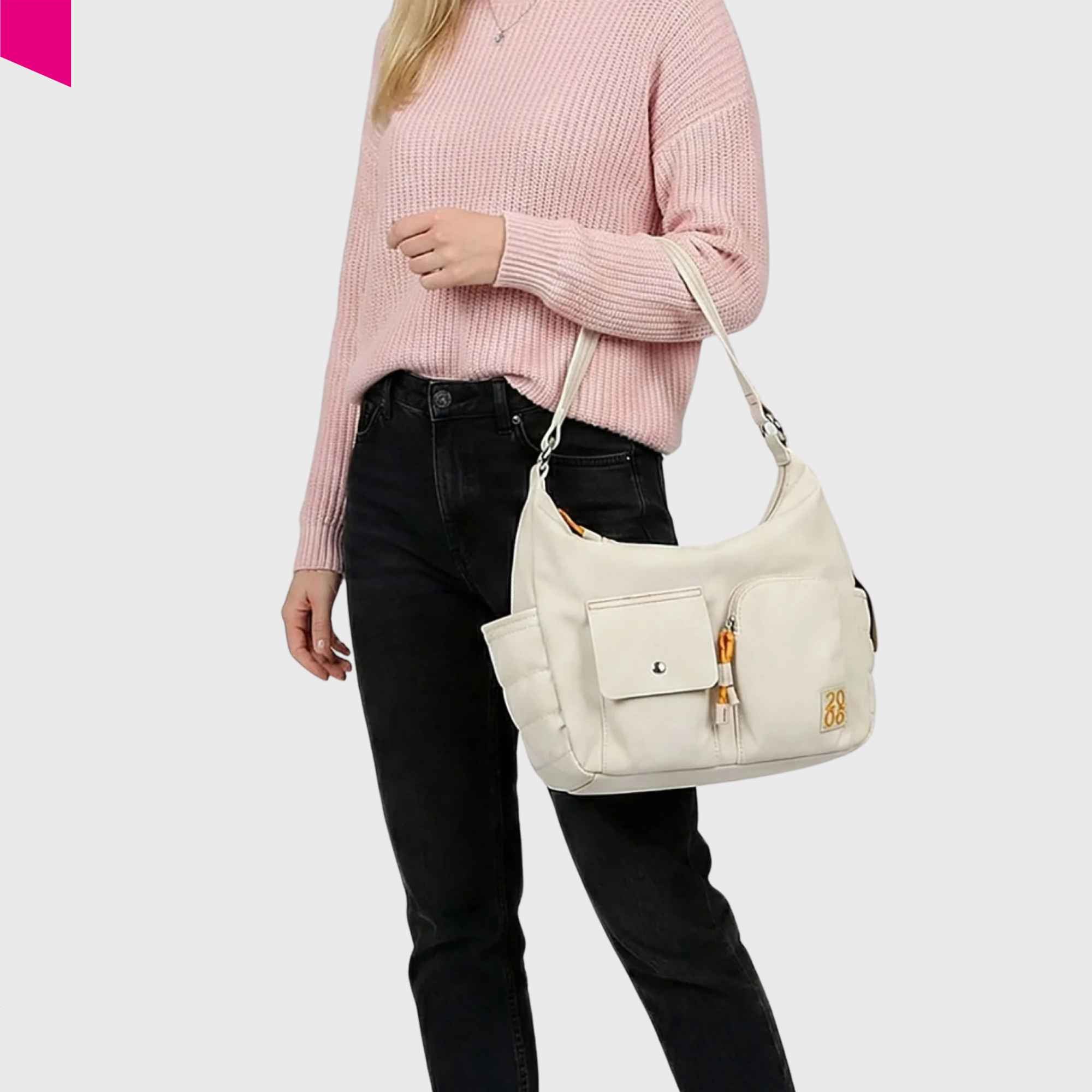 Dank Reißverschluss am Hauptfach sind persönliche Gegenstände sicher verstaut. Die Tasche bietet ausreichend Platz für alle wichtigen Essentials wie Geldbörse, Smartphone, Schlüssel, Kosmetik und kleine Alltagsbegleiter. Der längenverstellbare und abnehmbare Umhängeriemen ermöglicht flexible Tragevarianten – lässig über der Schulter oder bequem als Crossbody.