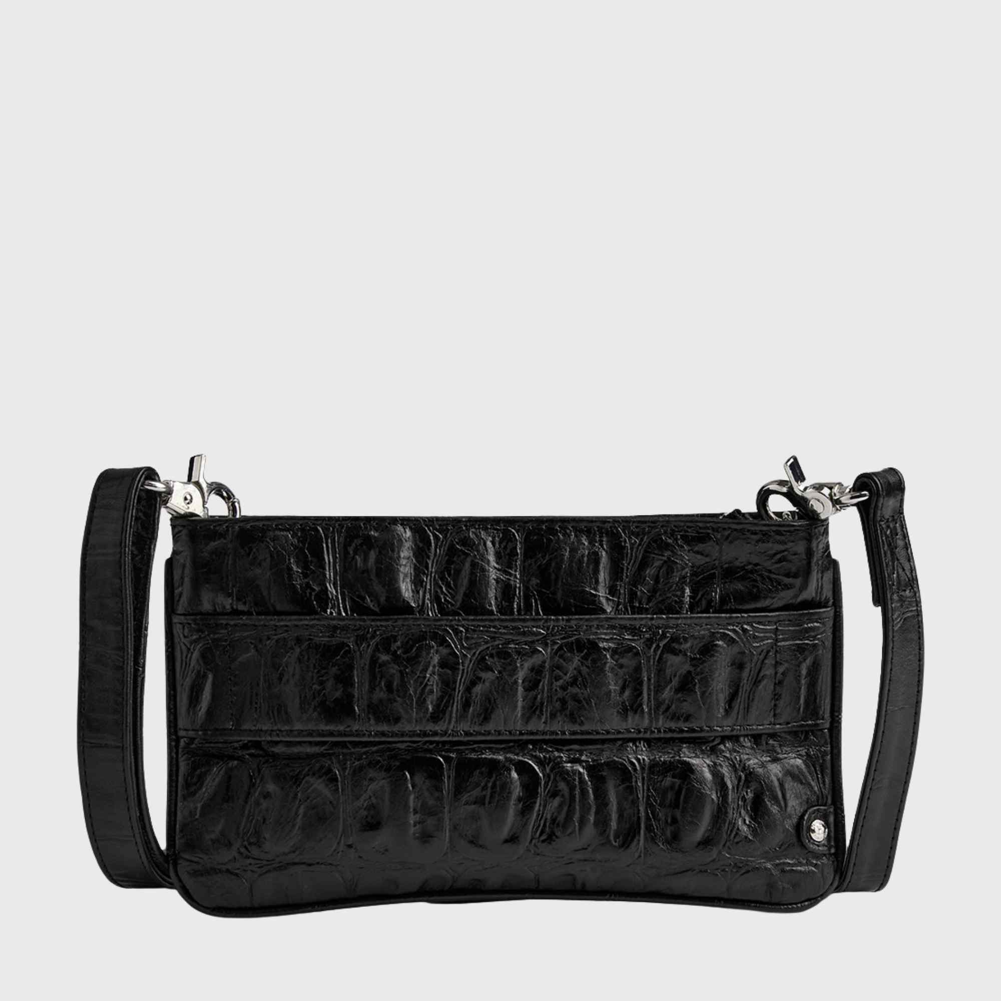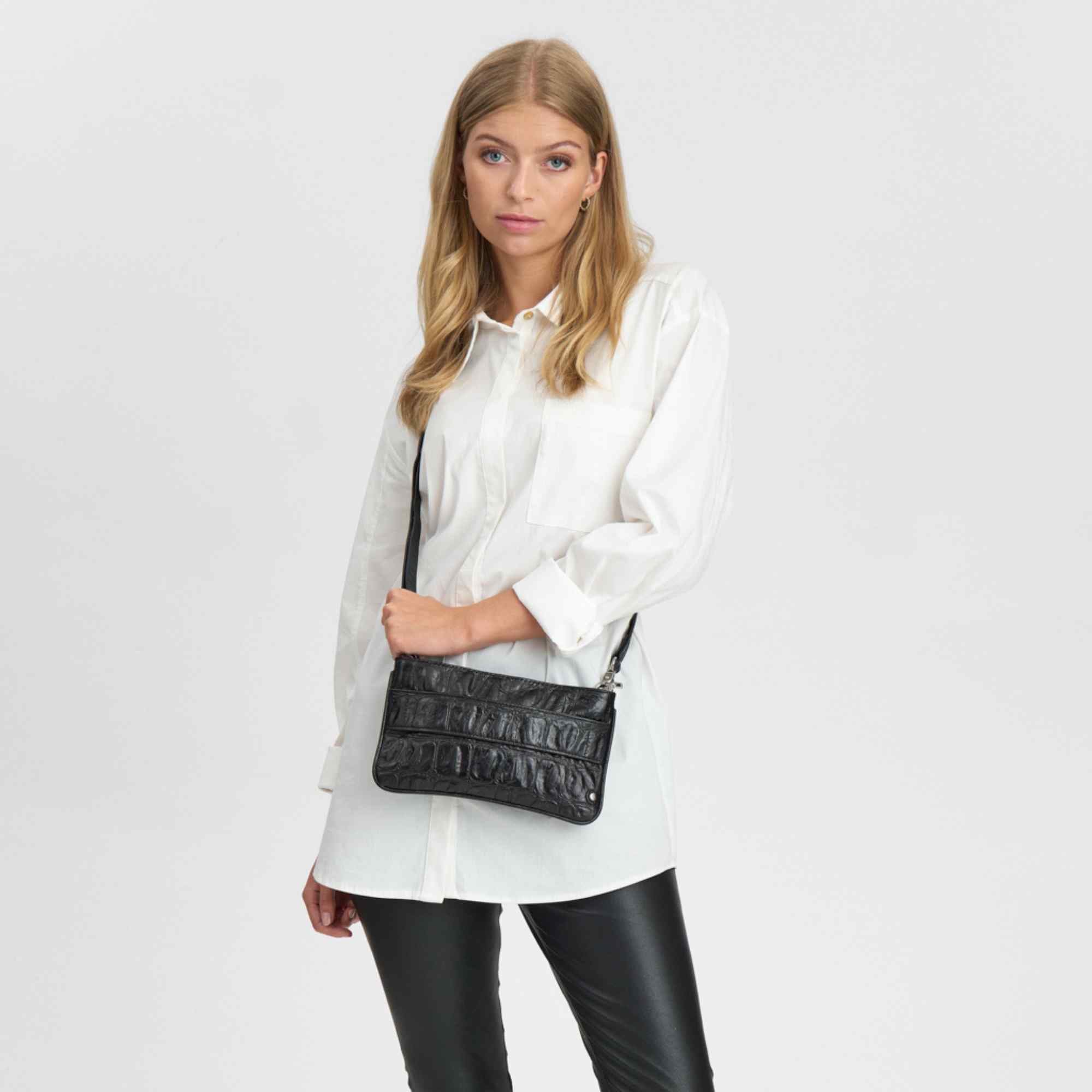 Diese Clutch aus croco-geprägtem Kalbsleder vereint zeitlose Eleganz mit modernem Ausdruck. Die strukturierte Oberfläche verleiht Tiefe und Raffinesse und macht sie zu einem exklusiven Piece, das jedes Outfit aufwertet. Ein Lederdetail auf der Vorderseite rundet das Design stilvoll ab.