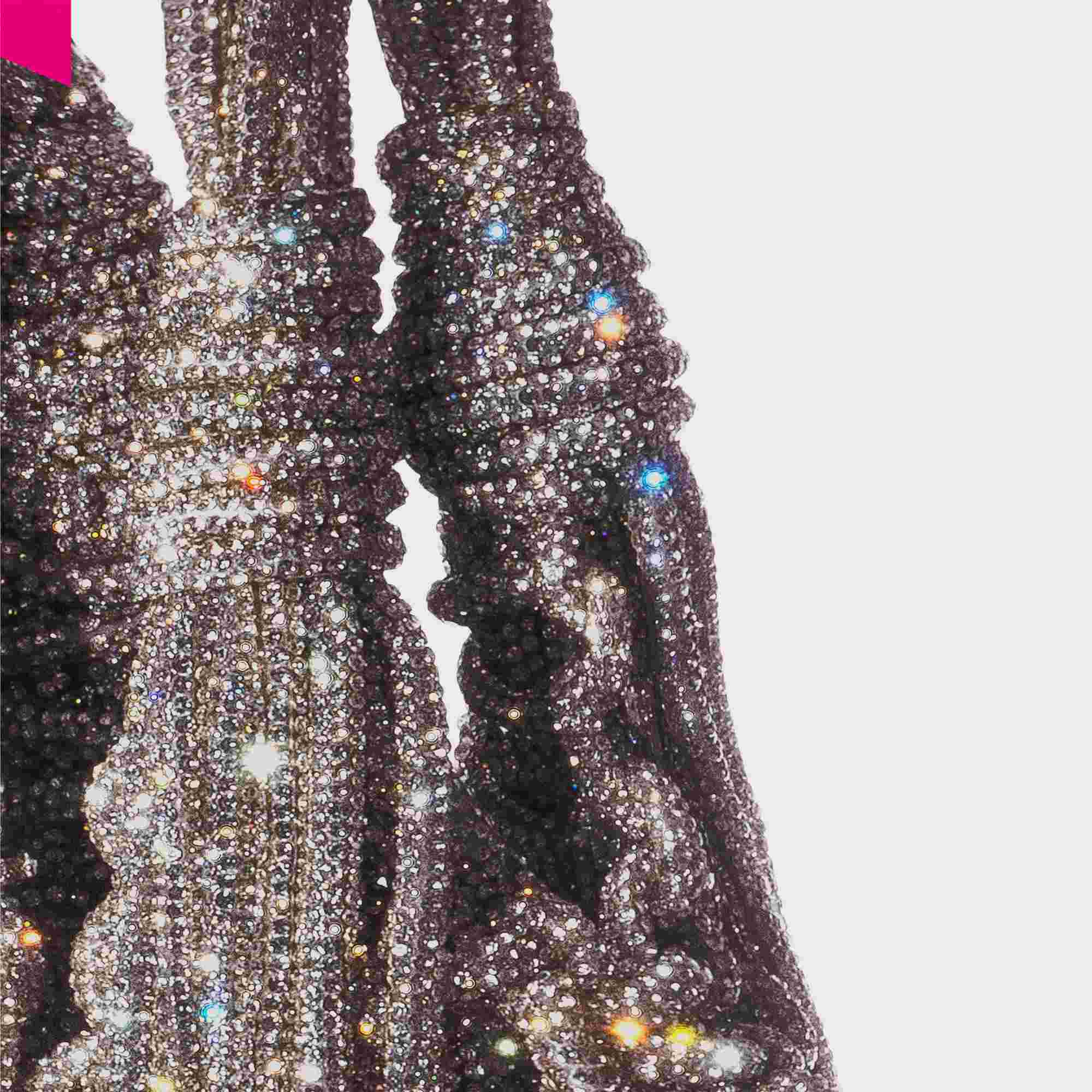 Durch ihre kompakte Form eignet sie sich ideal als stilvolle Abendtasche oder als auffälliges Statement Piece für besondere Anlässe.