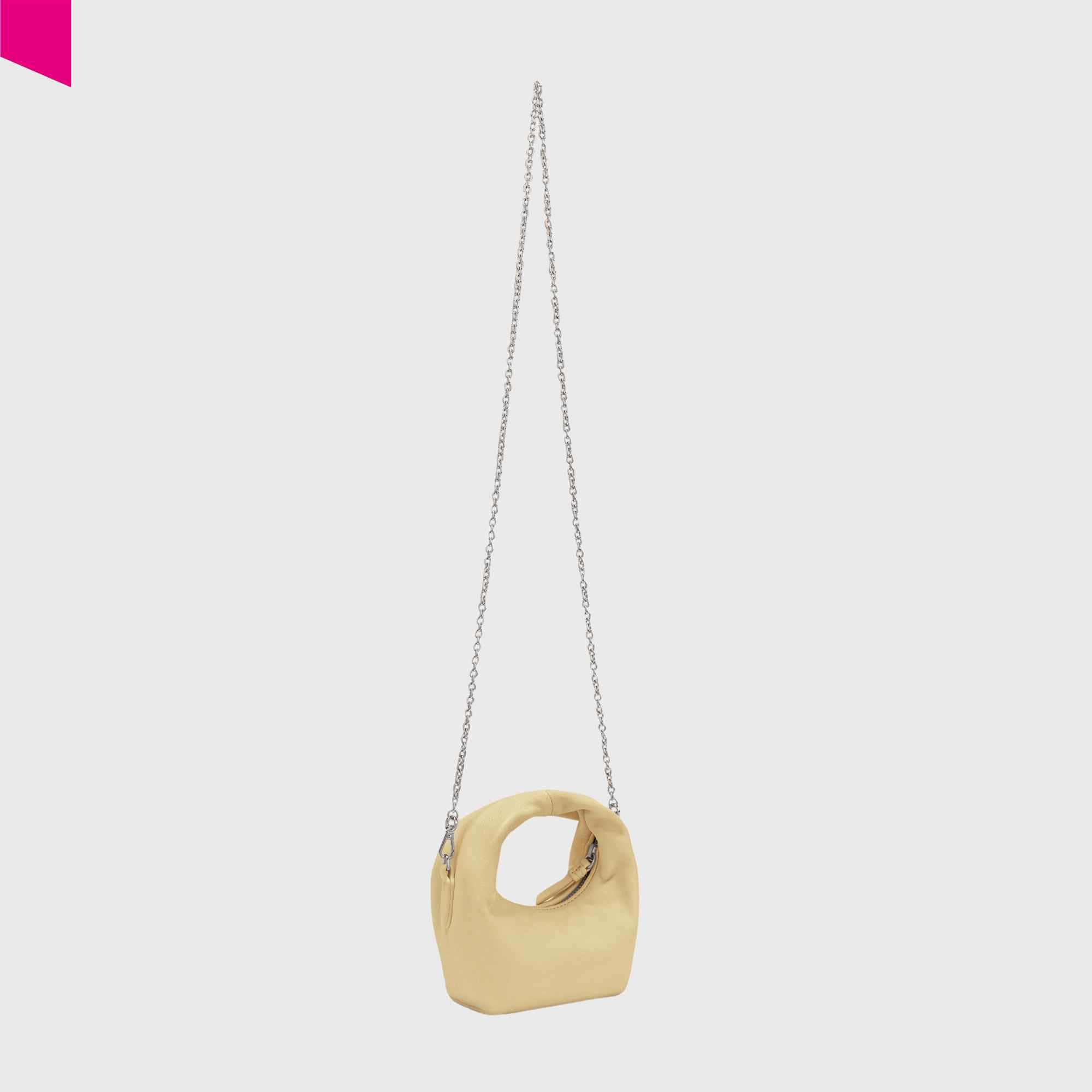 Greta Nano Silky Mini Tasche mit Kette haengend Seitenansicht