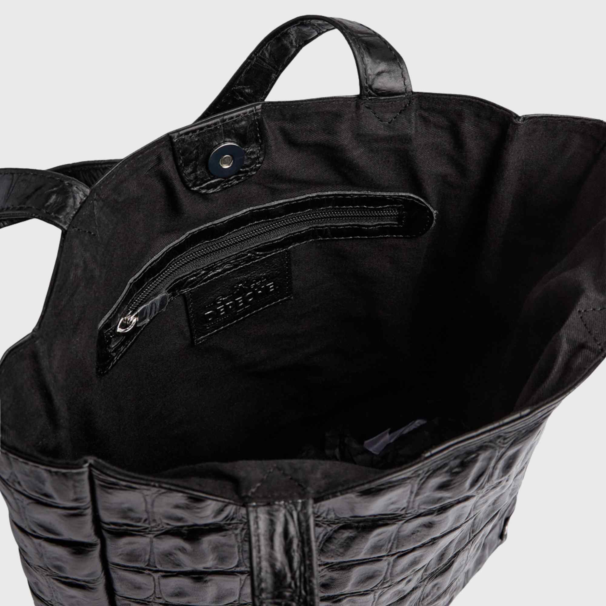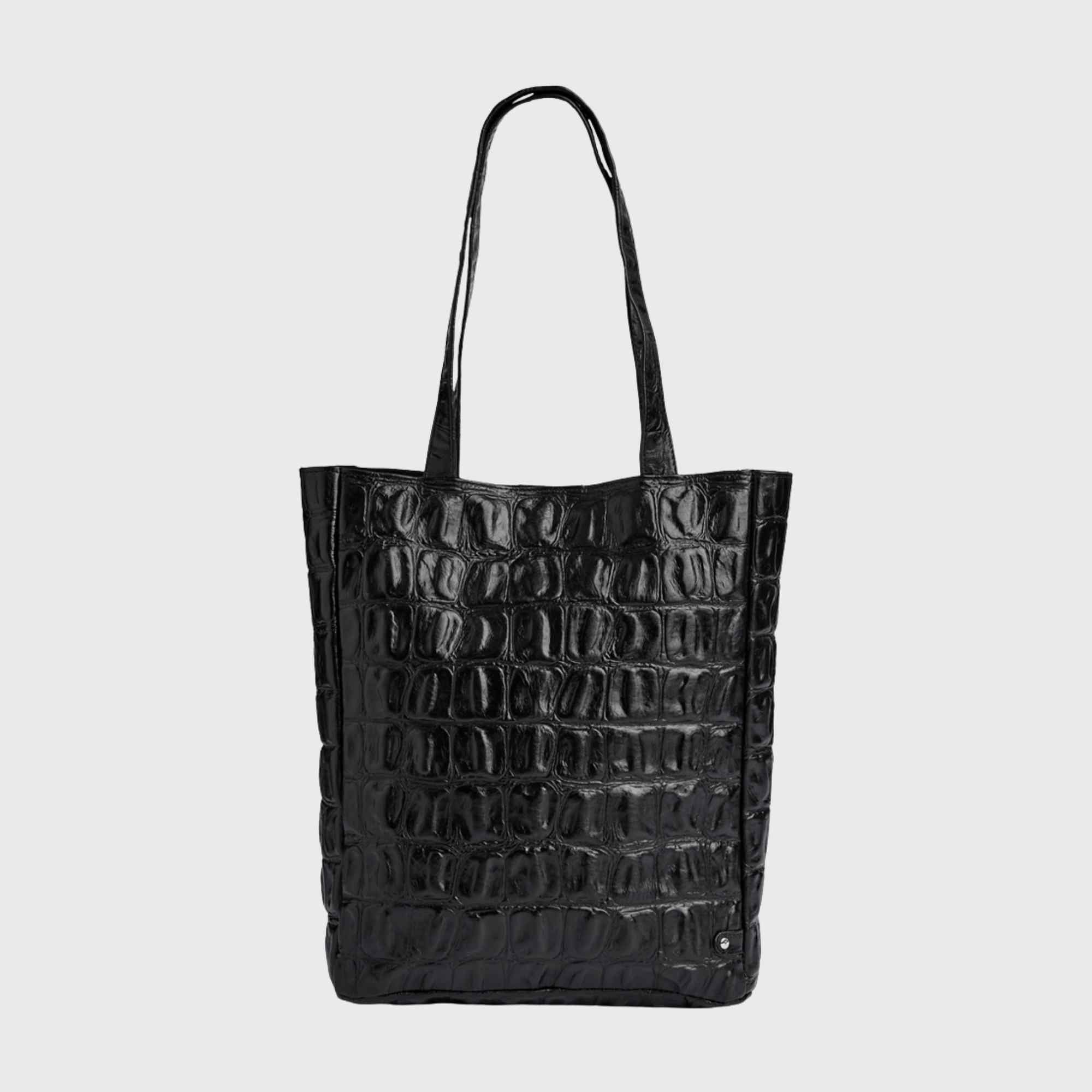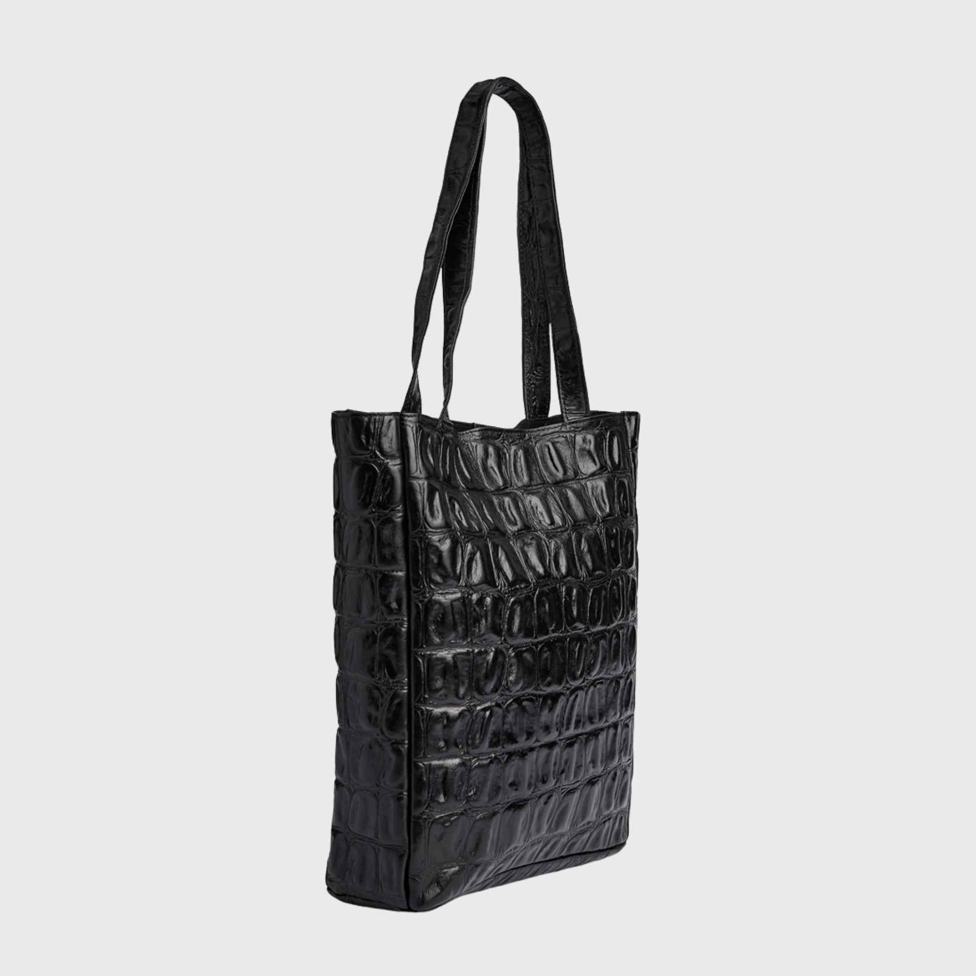 Dieser Shopper ist ein selbstbewusstes Statement-Piece, das praktische Funktionalität mit modernem Charakter verbindet. Das schwarze Finish in markanter Croco-Optik macht ihn zu einem echten Hingucker – und dennoch bleibt er klassisch und vielseitig kombinierbar.