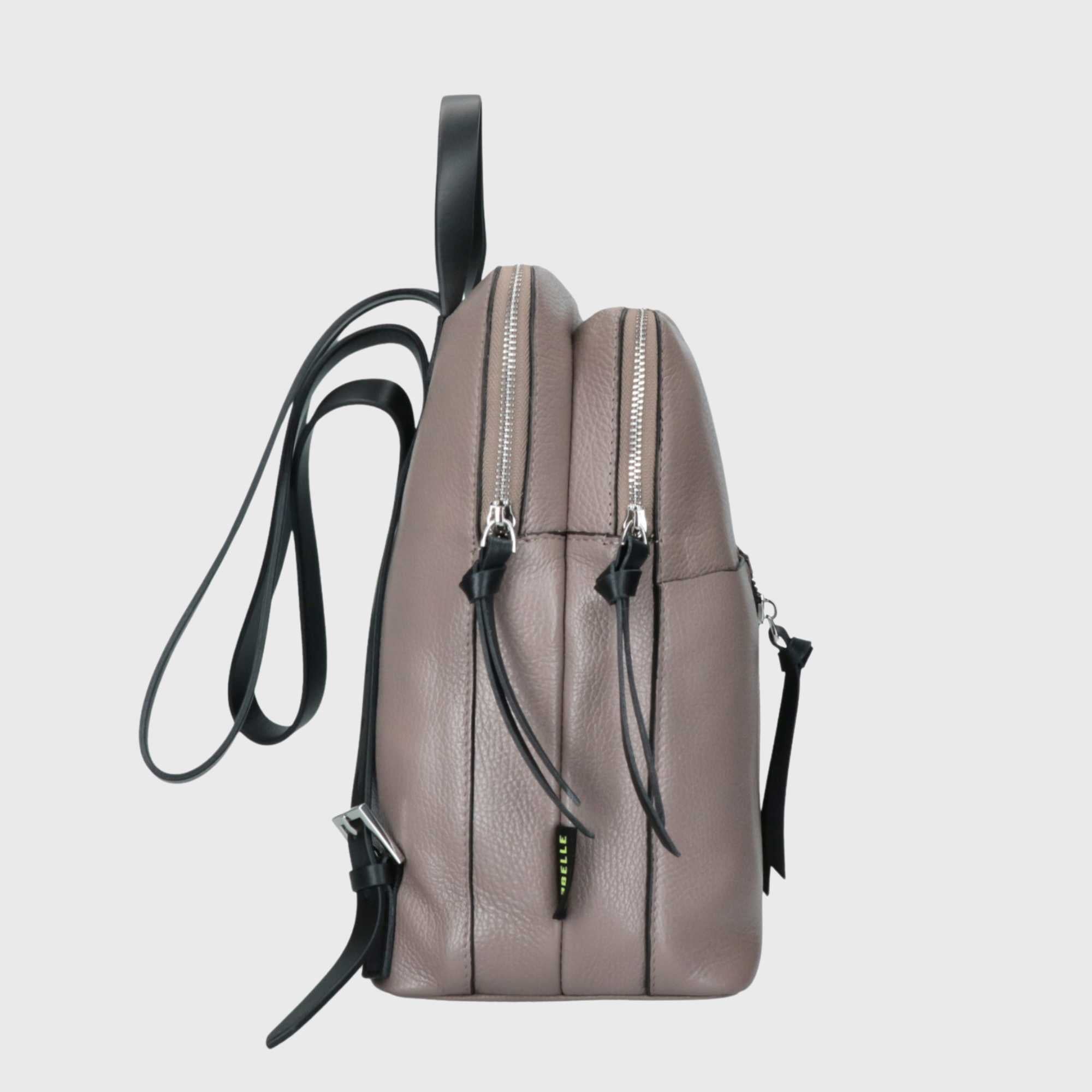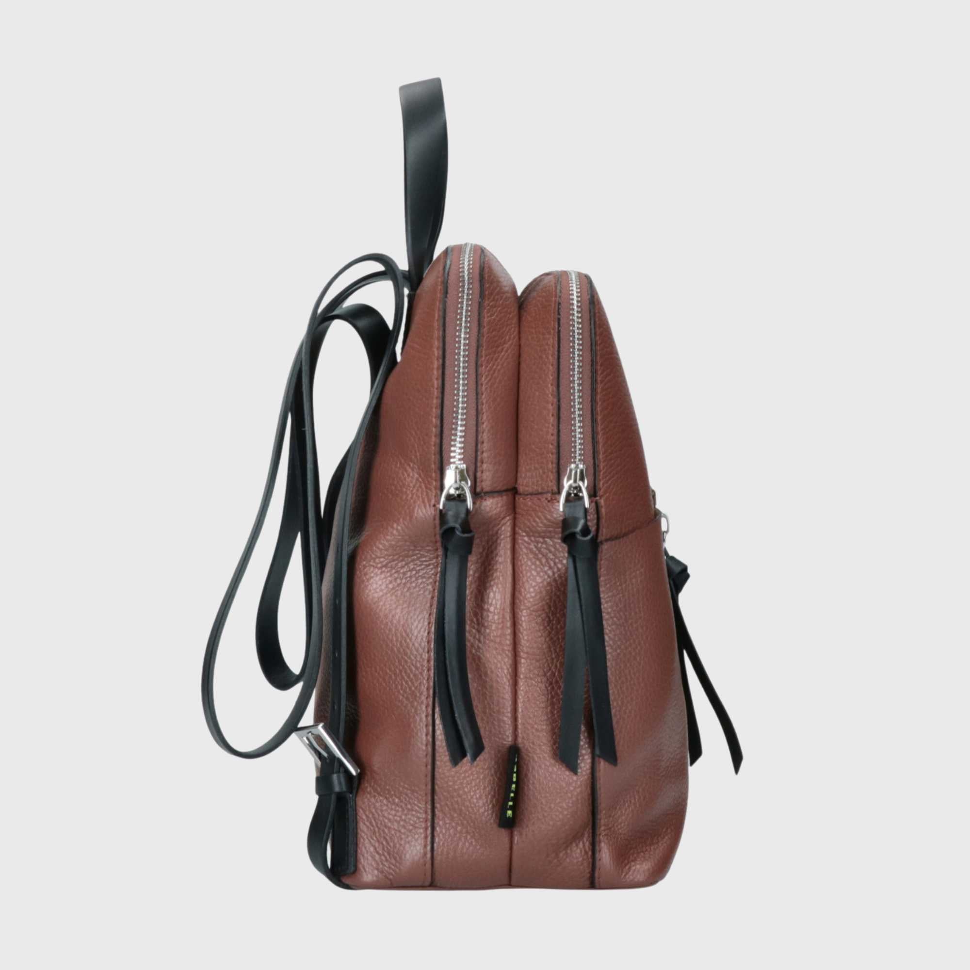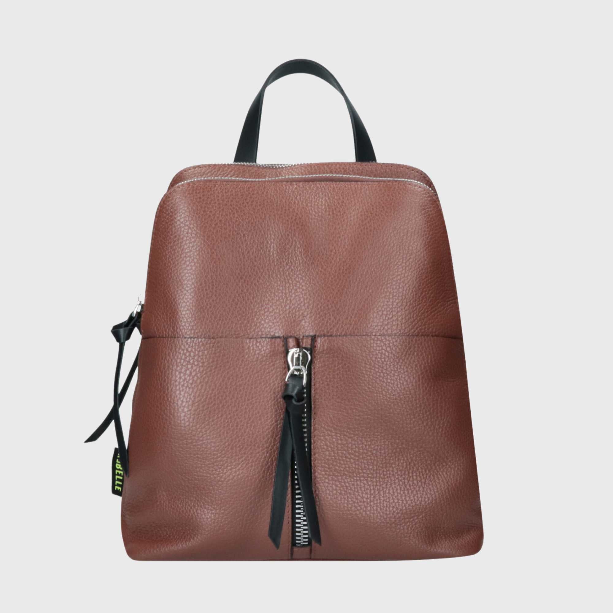 Dies ist DIANA, ein Rucksack aus echtem, in Italien gefertigtem Leder. Dieser gehört zur BASIC-Kollektion. Der Rucksack verfügt über zwei große, praktische Reißverschlusstaschen. Die Schulterriemen sind verstellbar, um ein bequemeres Tragen zu ermöglichen. Das Innere ist gefüttert und enthält kleine Fächer für ein Handy oder einen Schlüsselanhänger. DIANA ist ein bequemer Alltagsrucksack, der immer modisch bleibt.