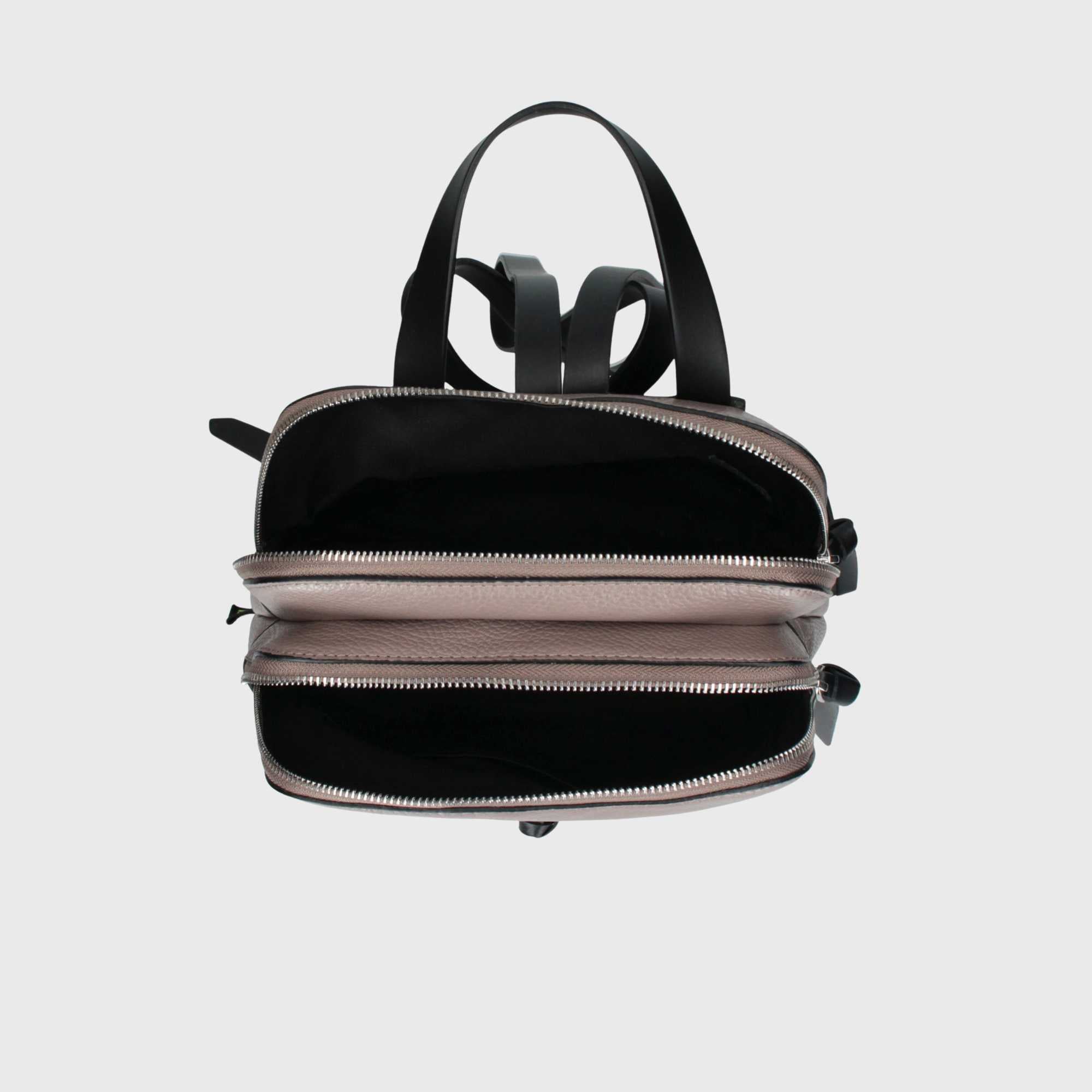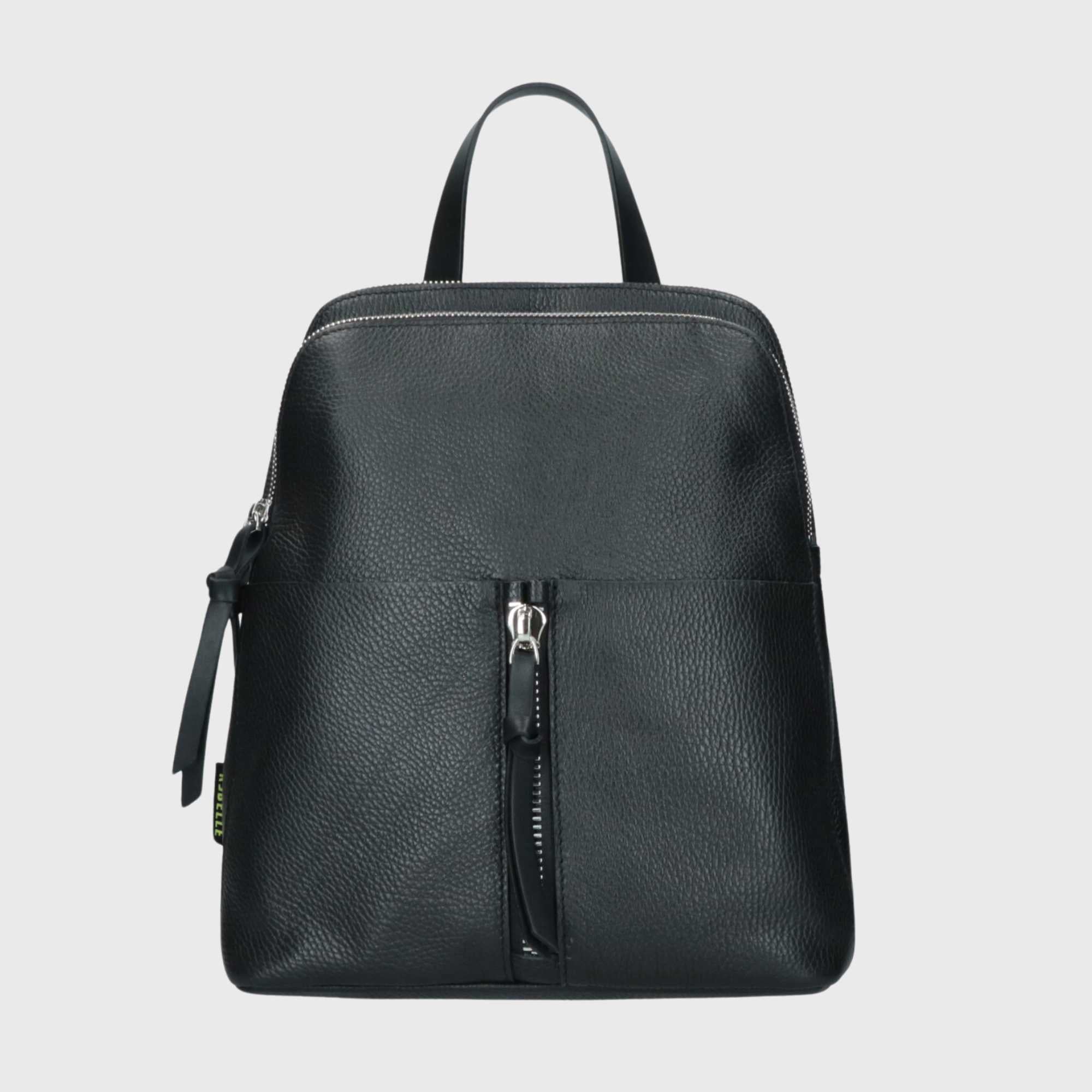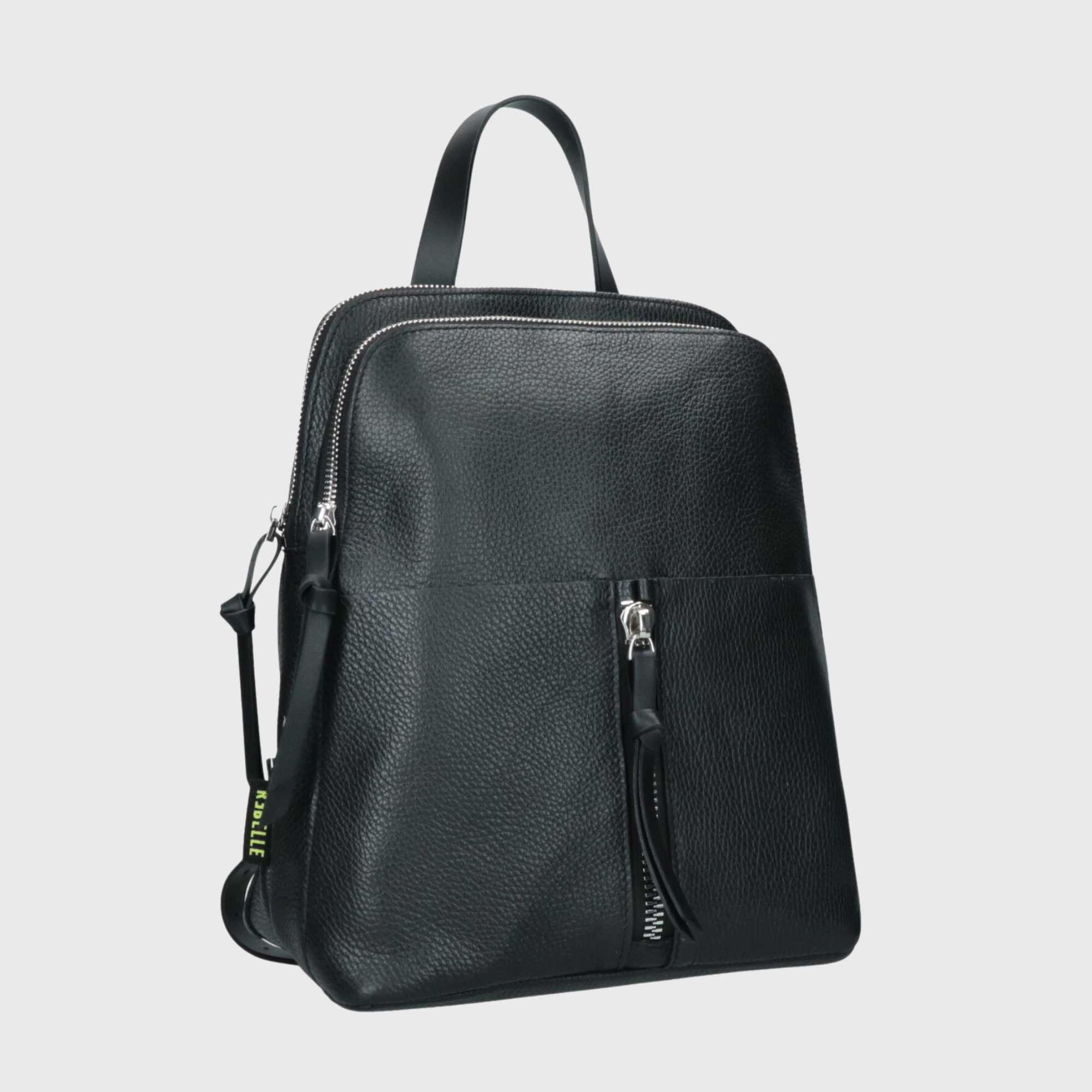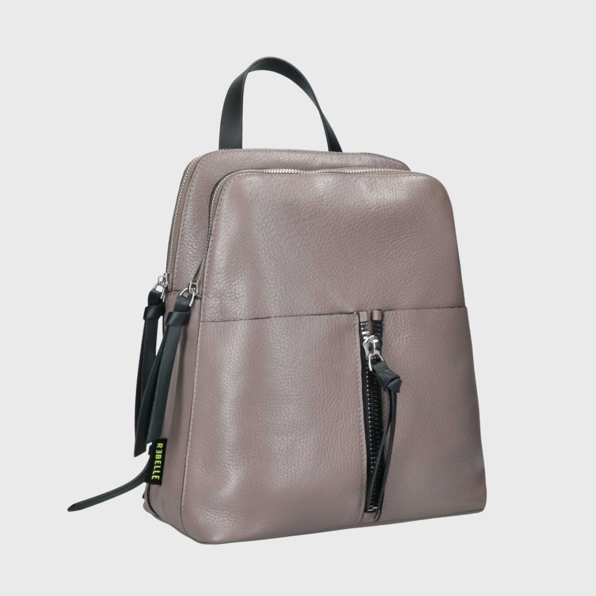 Dies ist DIANA, ein Rucksack aus echtem, in Italien gefertigtem Leder. Dieser gehört zur BASIC-Kollektion. Der Rucksack verfügt über zwei große, praktische Reißverschlusstaschen. Die Schulterriemen sind verstellbar, um ein bequemeres Tragen zu ermöglichen. Das Innere ist gefüttert und enthält kleine Fächer für ein Handy oder einen Schlüsselanhänger. DIANA ist ein bequemer Alltagsrucksack, der immer modisch bleibt.