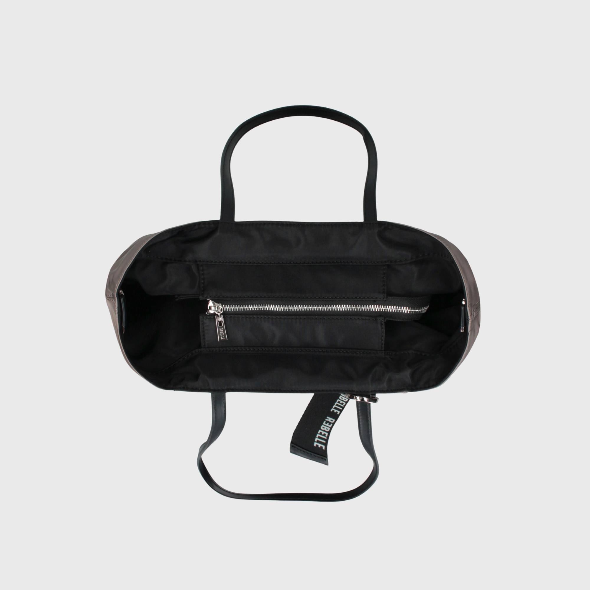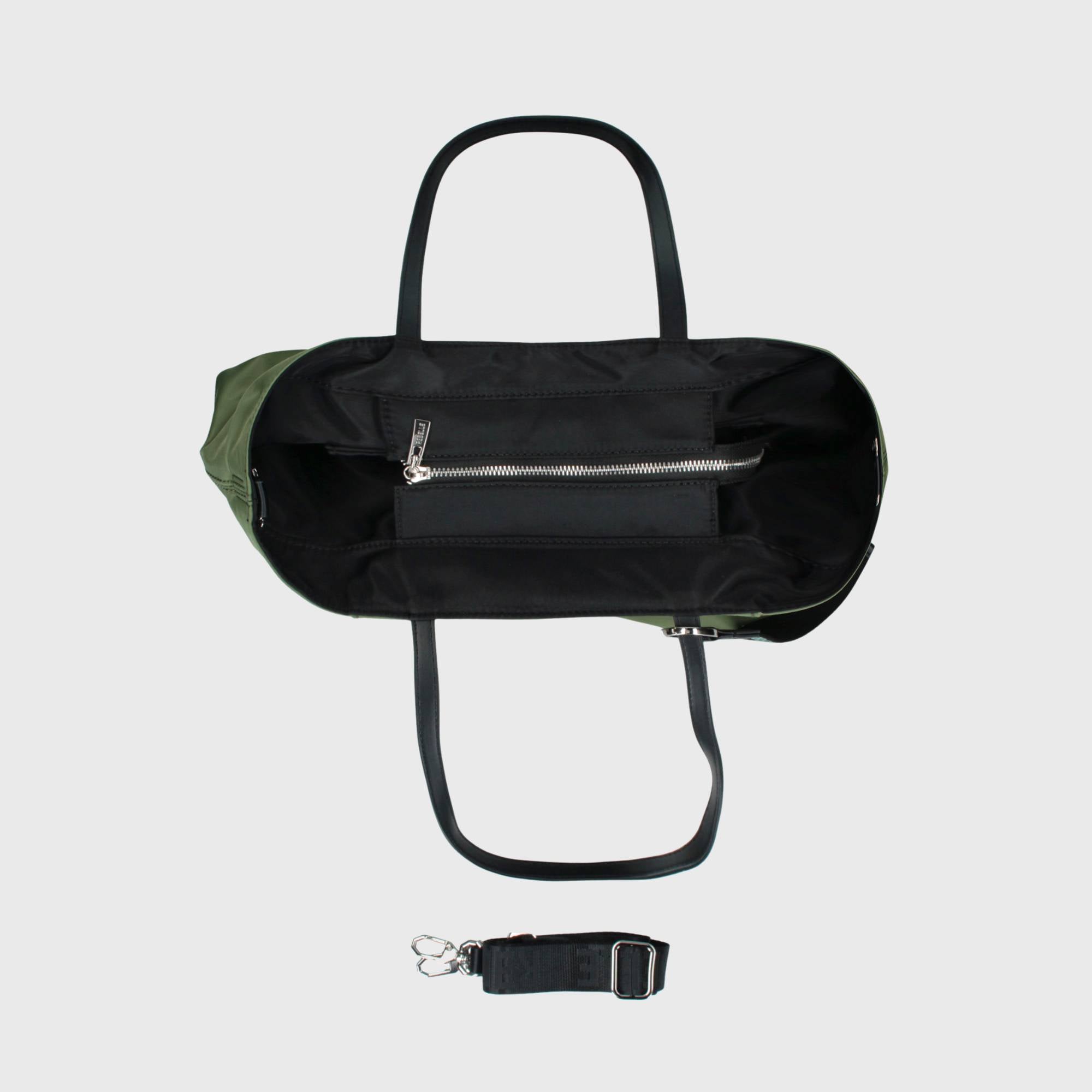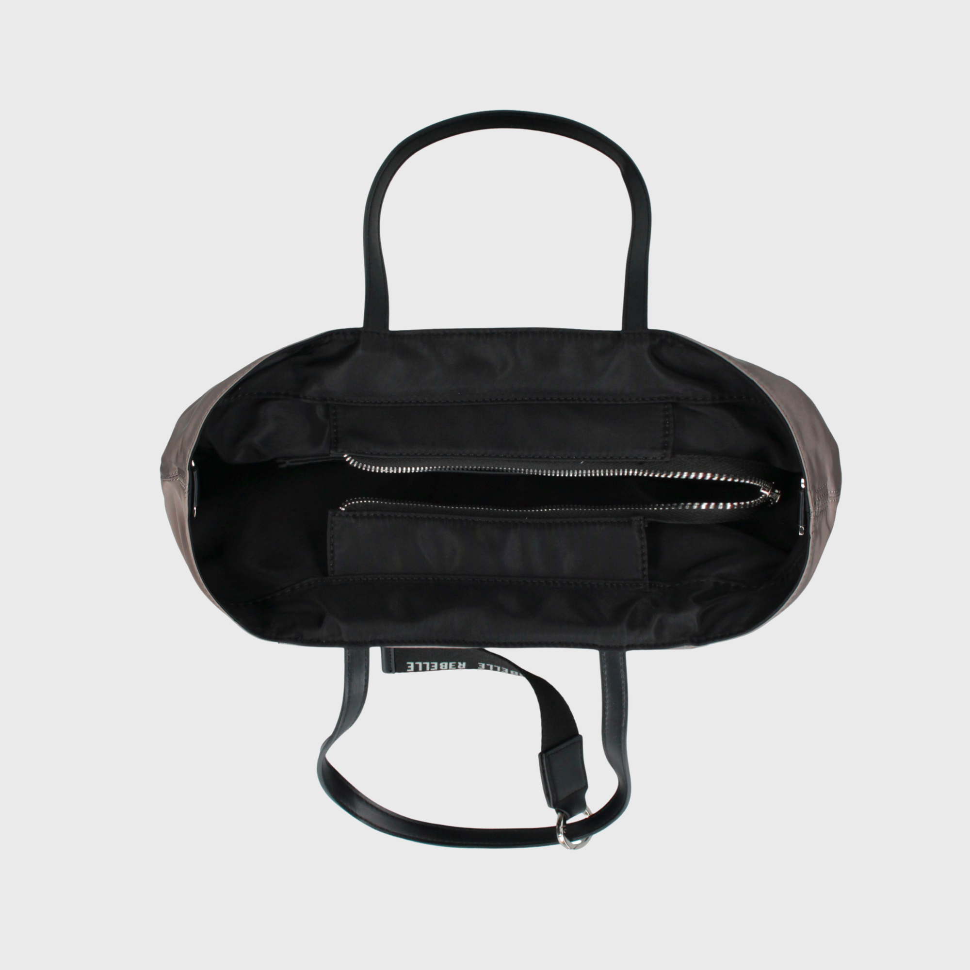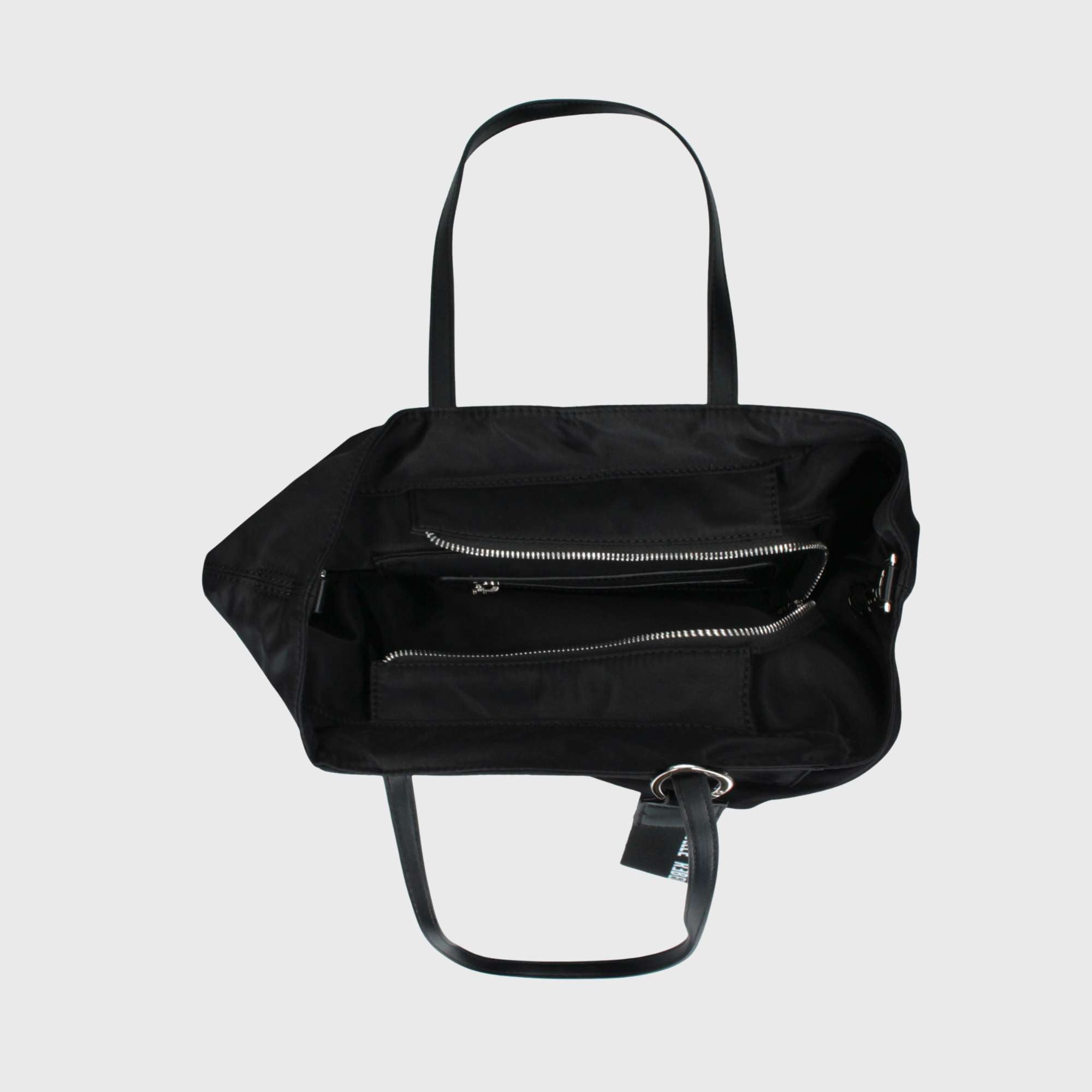 Die Tasche ist MYRNA, das neue Modell aus Nylon. Sie gehört zur NYLON-Kollektion. Sie kann über der Schulter getragen werden und dank des abnehmbaren und verstellbaren Schulterriemens auch als Crossbody-Tasche verwendet werden. MYRNA ist eine geräumige und praktische Shopping-Tasche, die mit einem Reißverschluss verschlossen wird.