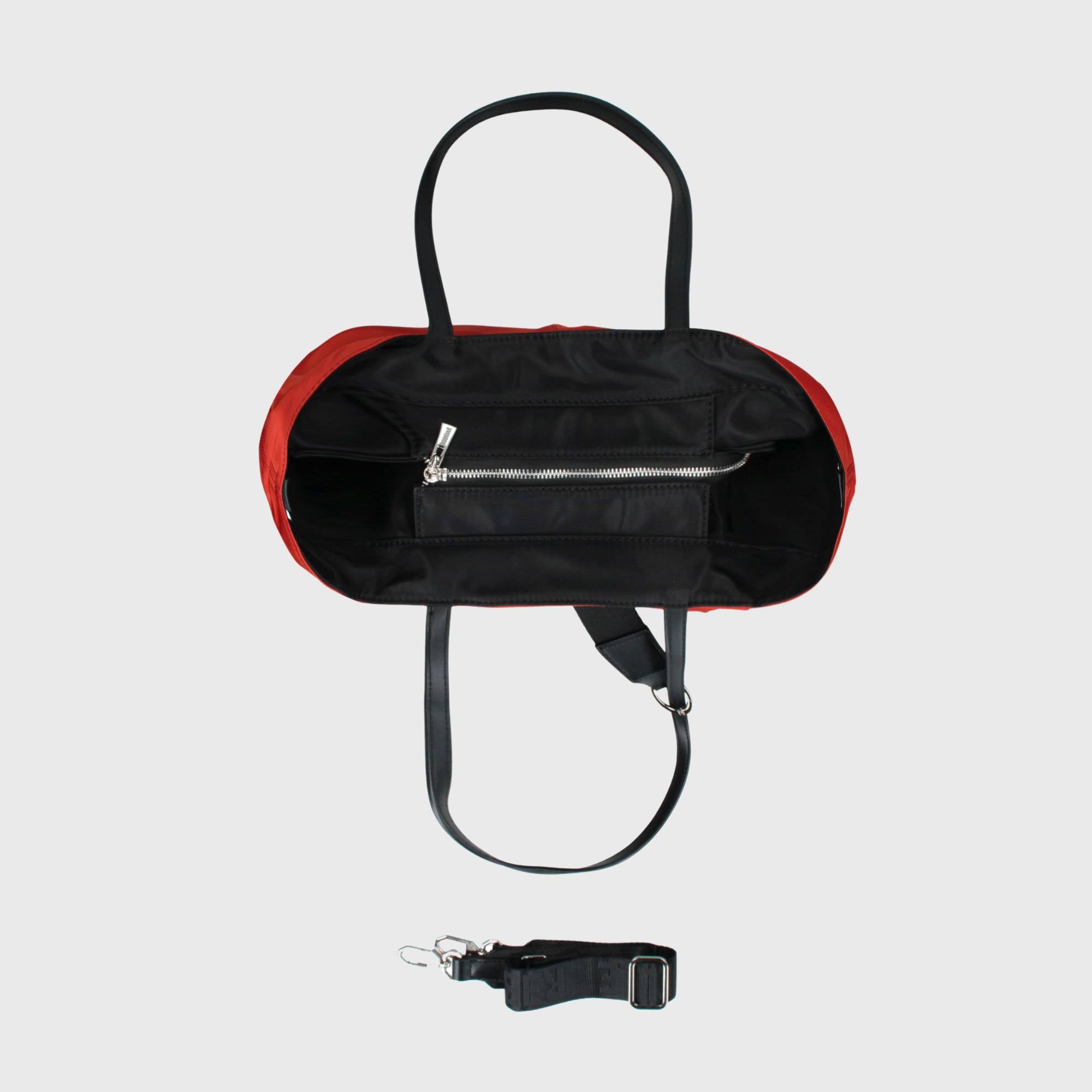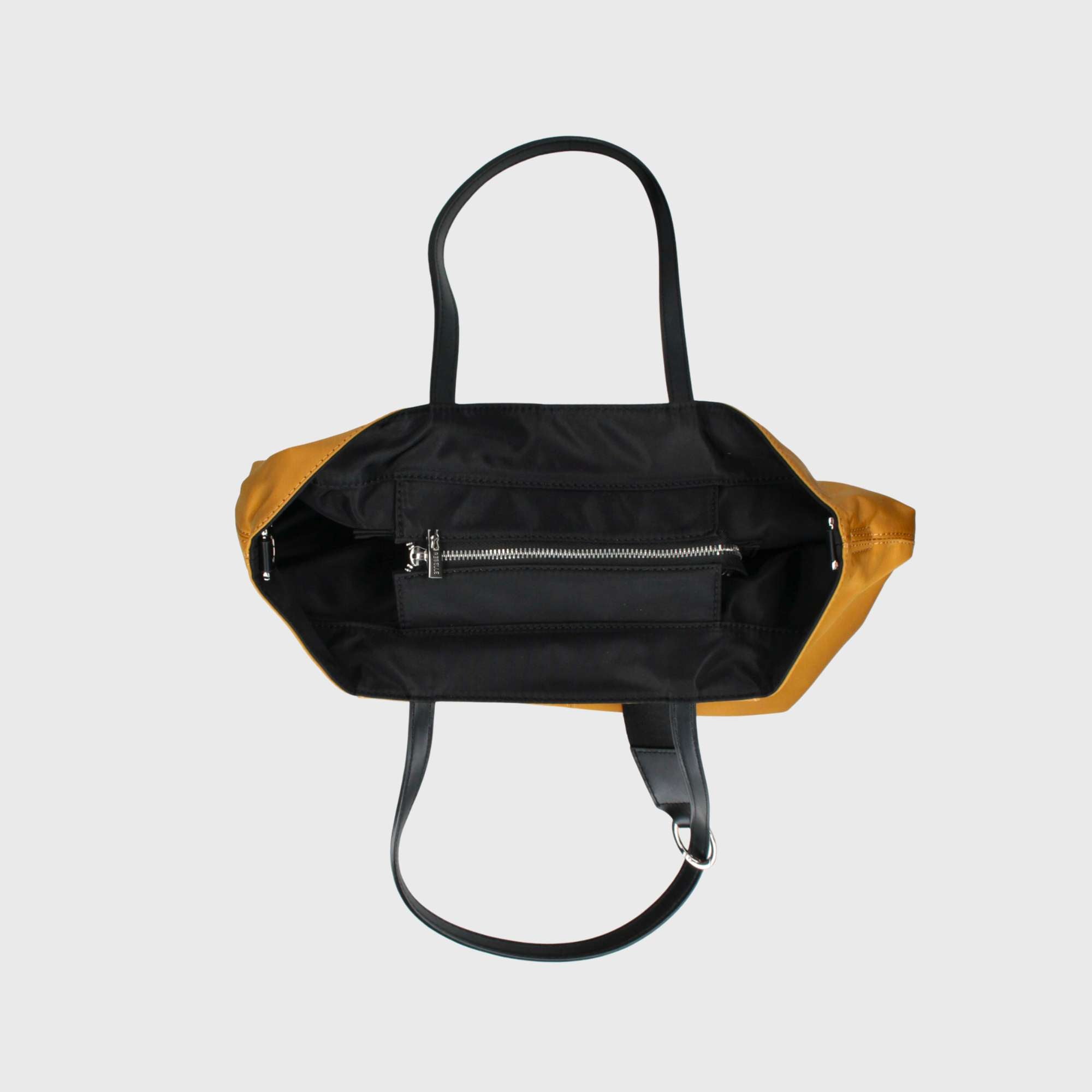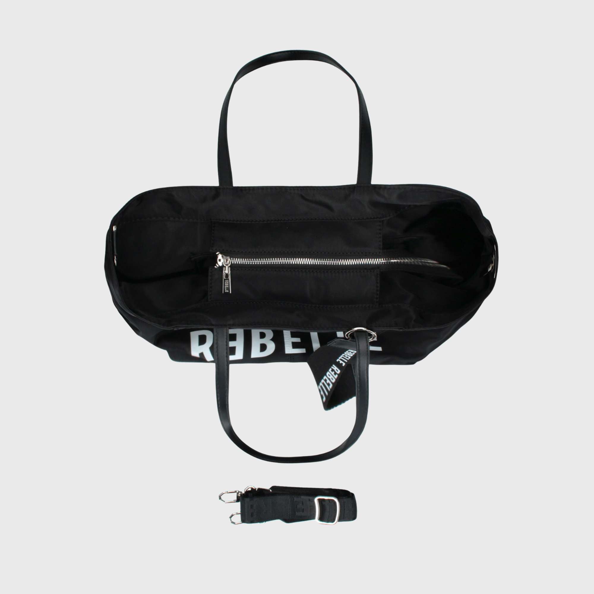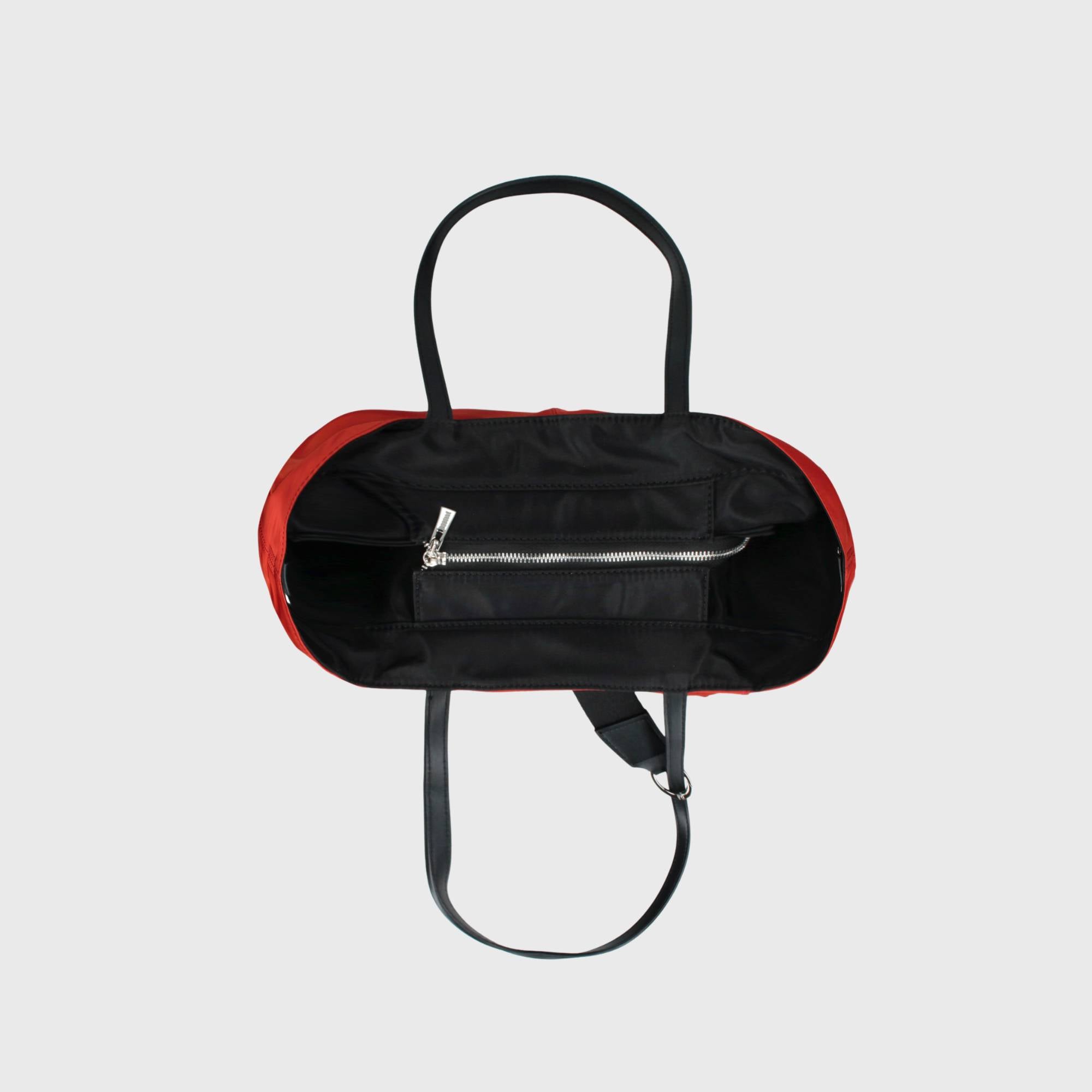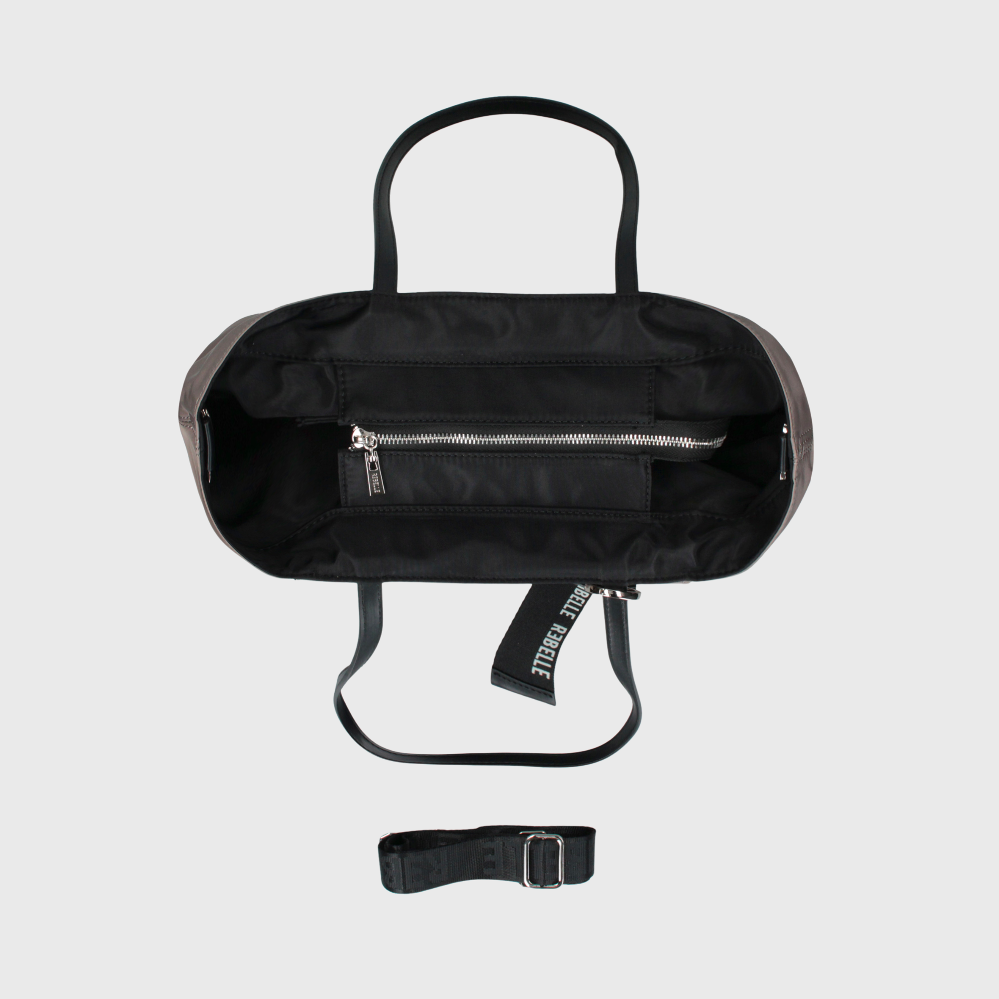 Die Tasche ist MYRNA, das neue Modell aus Nylon. Sie gehört zur NYLON-Kollektion. Sie kann über der Schulter getragen werden und dank des abnehmbaren und verstellbaren Schulterriemens auch als Crossbody-Tasche verwendet werden. MYRNA ist eine geräumige und praktische Shopping-Tasche, die mit einem Reißverschluss verschlossen wird.