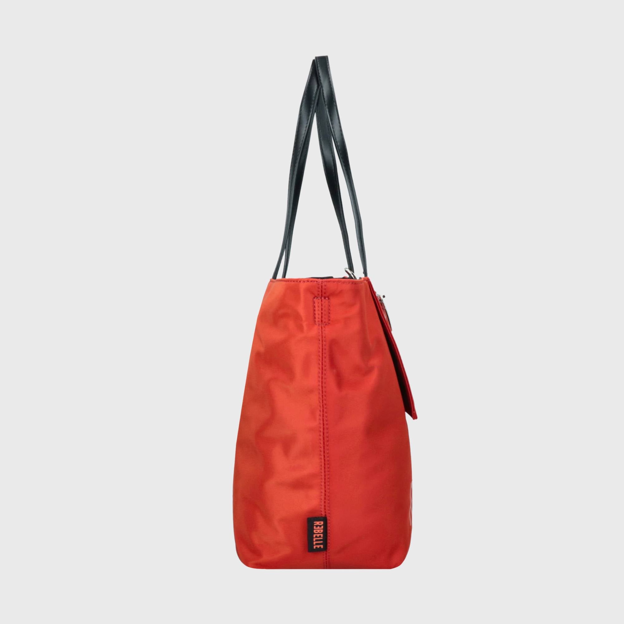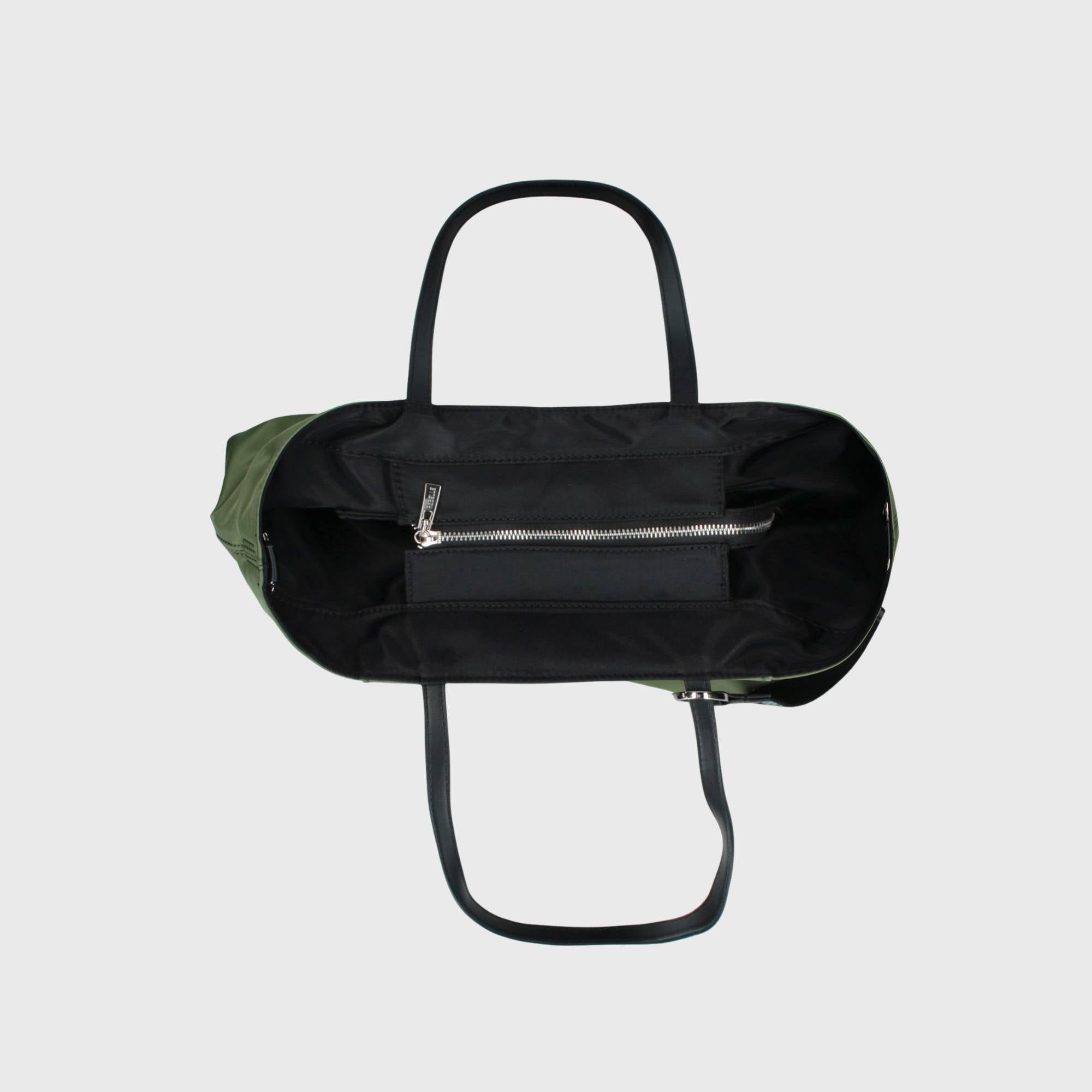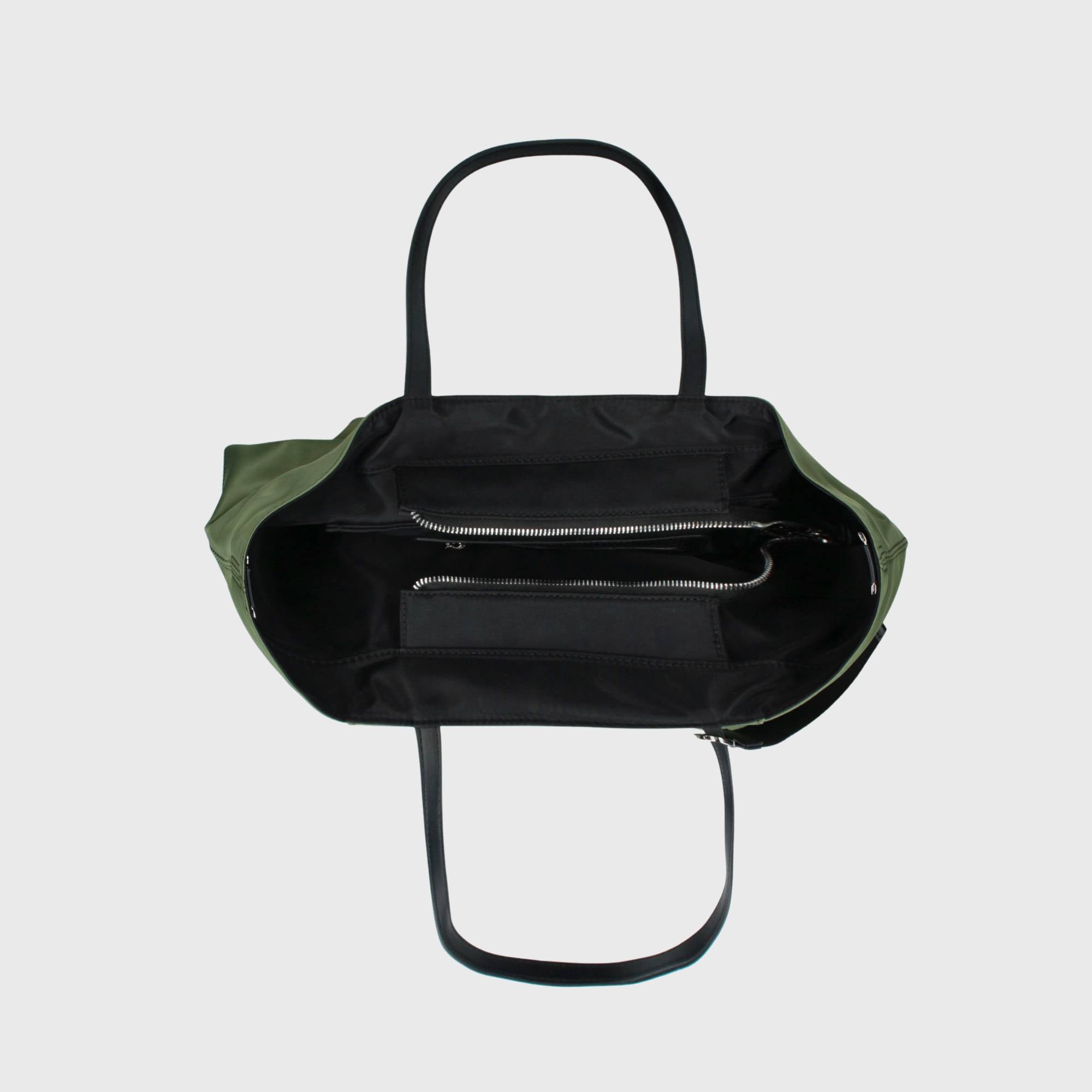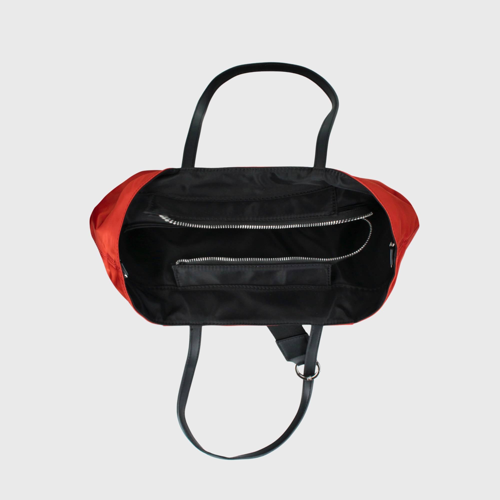 Die Tasche ist MYRNA, das neue Modell aus Nylon. Sie gehört zur NYLON-Kollektion. Sie kann über der Schulter getragen werden und dank des abnehmbaren und verstellbaren Schulterriemens auch als Crossbody-Tasche verwendet werden. MYRNA ist eine geräumige und praktische Shopping-Tasche, die mit einem Reißverschluss verschlossen wird.