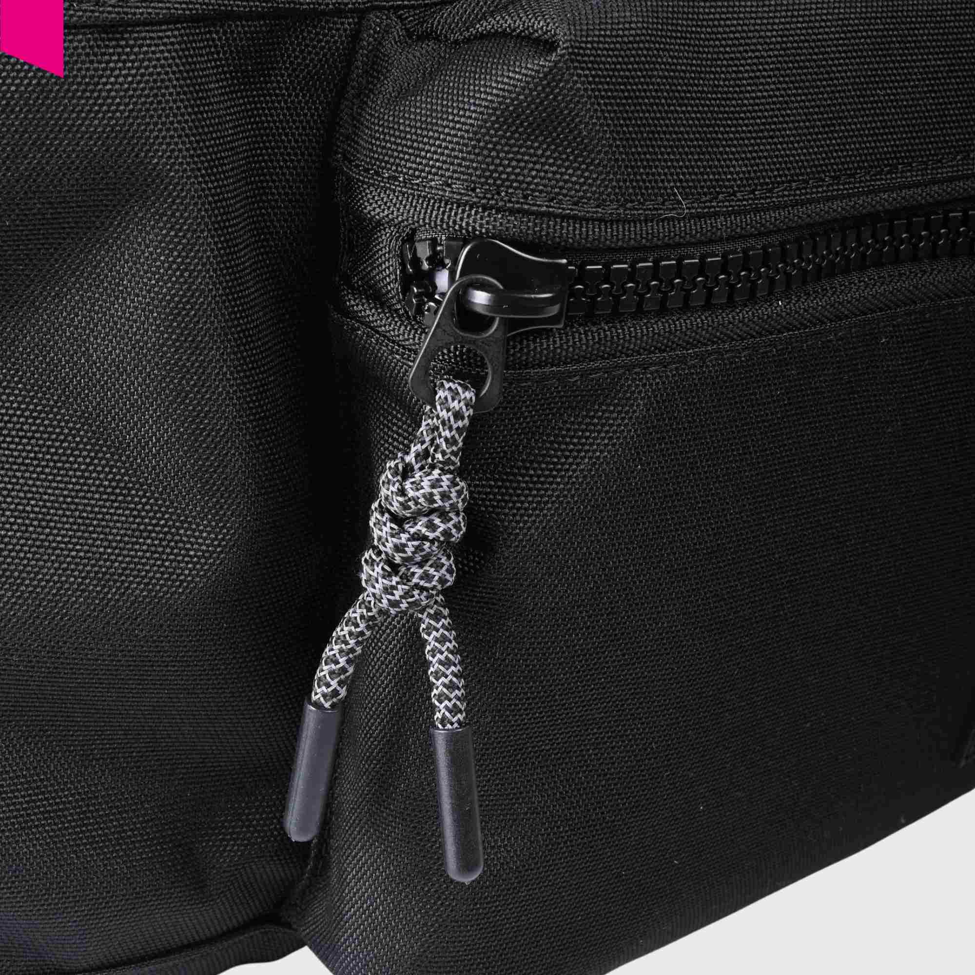 Das Hauptfach wird mit einem Zwei-Wege-Reißverschluss geschlossen und bietet viel Stauraum für Kleidung und Essentials. Innen befinden sich ein Reißverschlussfach sowie zwei Steckfächer für kleinere Gegenstände. Auf der Vorderseite sorgt ein zusätzliches Reißverschlussfach mit Befestigungsring für schnellen Zugriff.