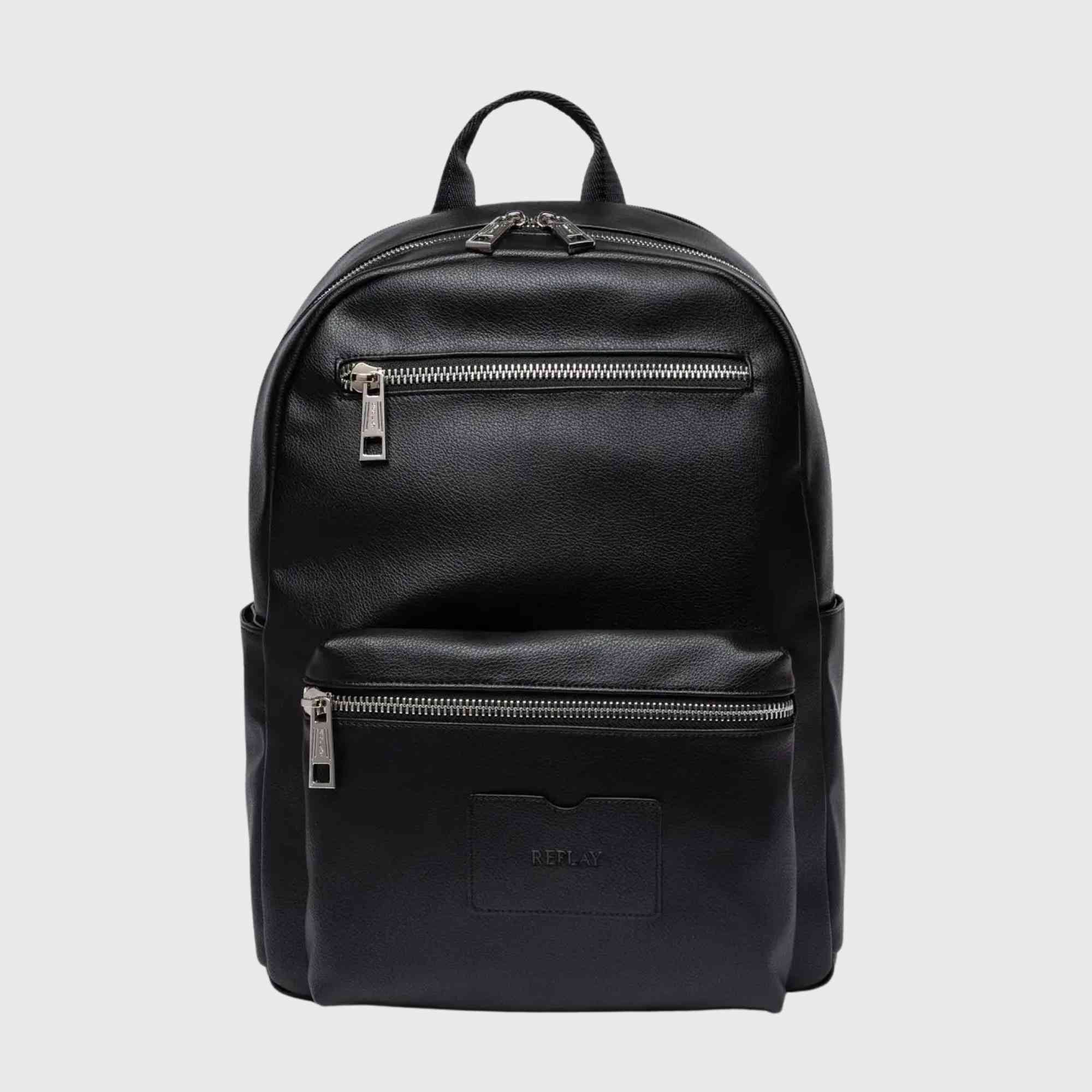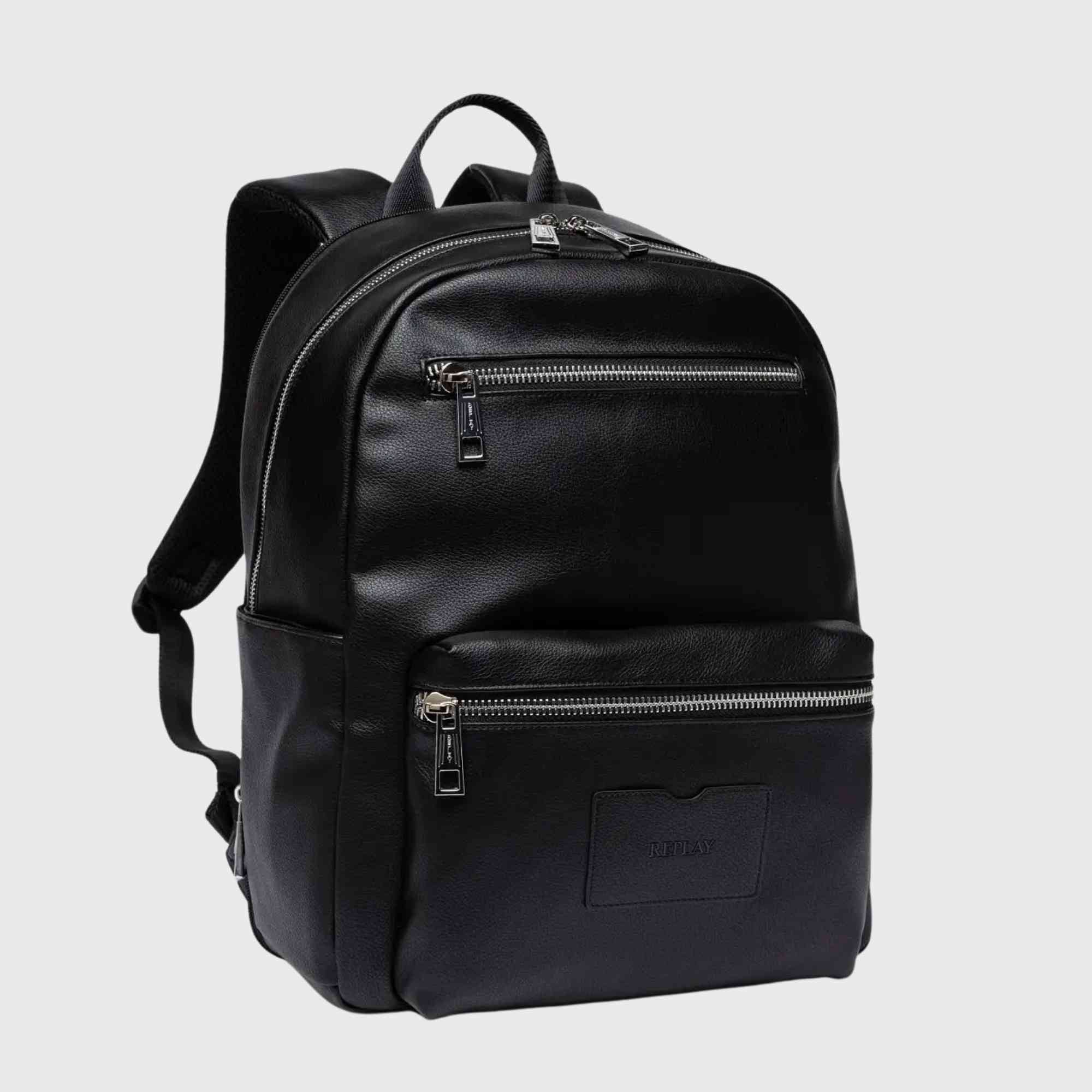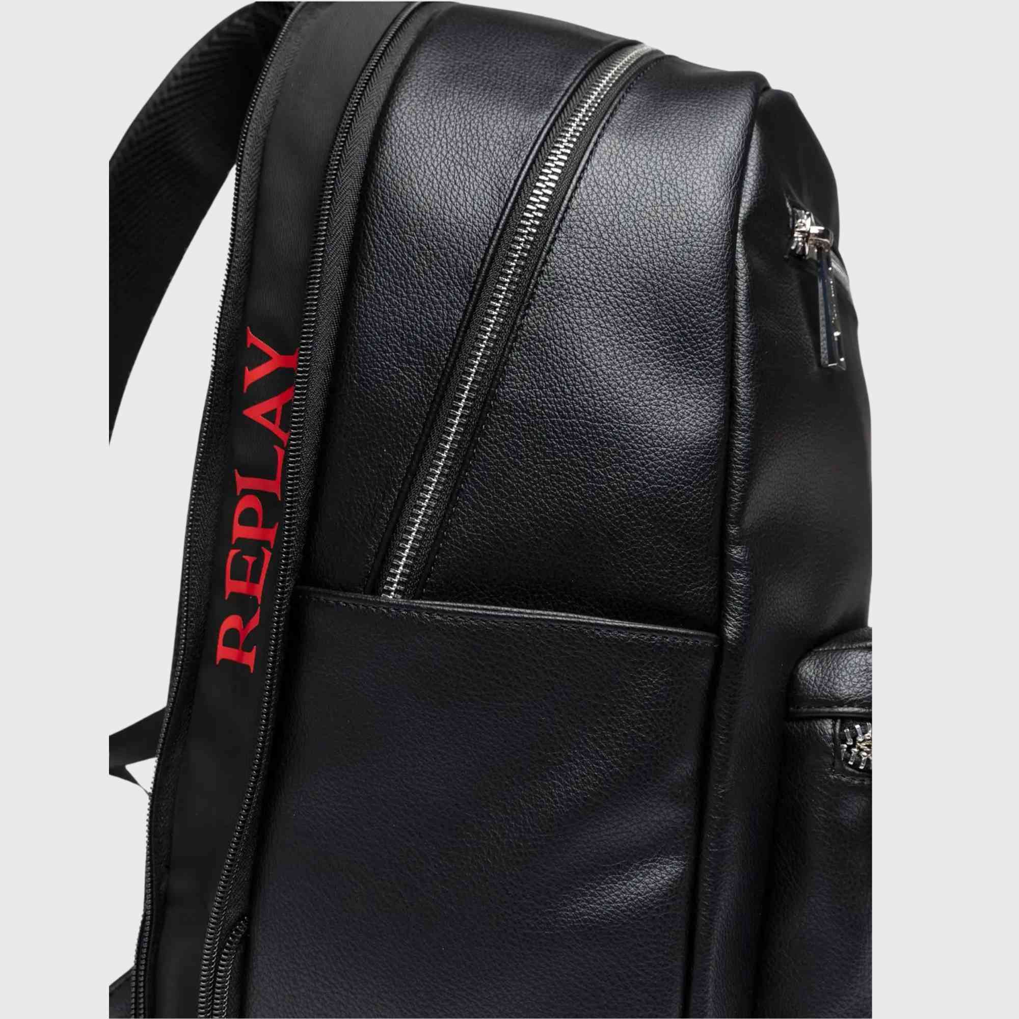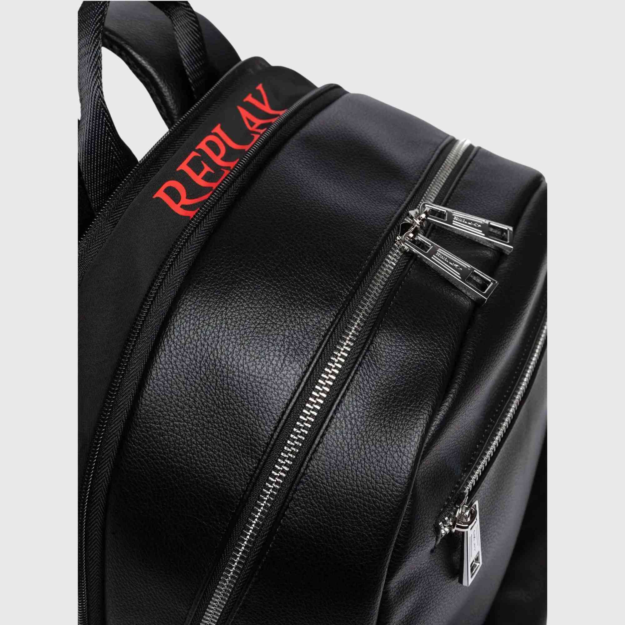 Unifarbener Rucksack aus recyceltem PU in gewalkter Optik, mit Rückenteil aus atmungsaktivem Material, kontrastierenden Details undverstellbaren Schultergurten. Das Modell mit Zwei-Wege-Reißverschluss ist in der Breite erweiterbar und wird durch eine Vordertasche und ein großes Fach, beide mit Reißverschluss, ergänzt. Abgerundet wird das Accessoire durch die kleine aufgesetzte Tasche auf derVorderseite, die mit dem Replay-Schriftzug versehen ist und die DNA der Marke zum Ausdruck bringt. Die Verwendung von recyceltem PUunterstreicht das Engagement von Replay für nachhaltige Mode.